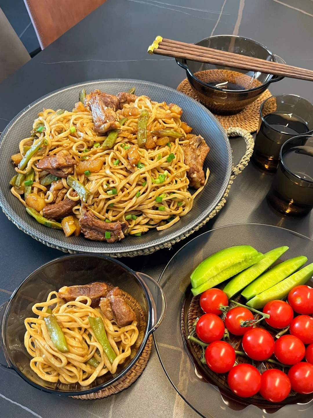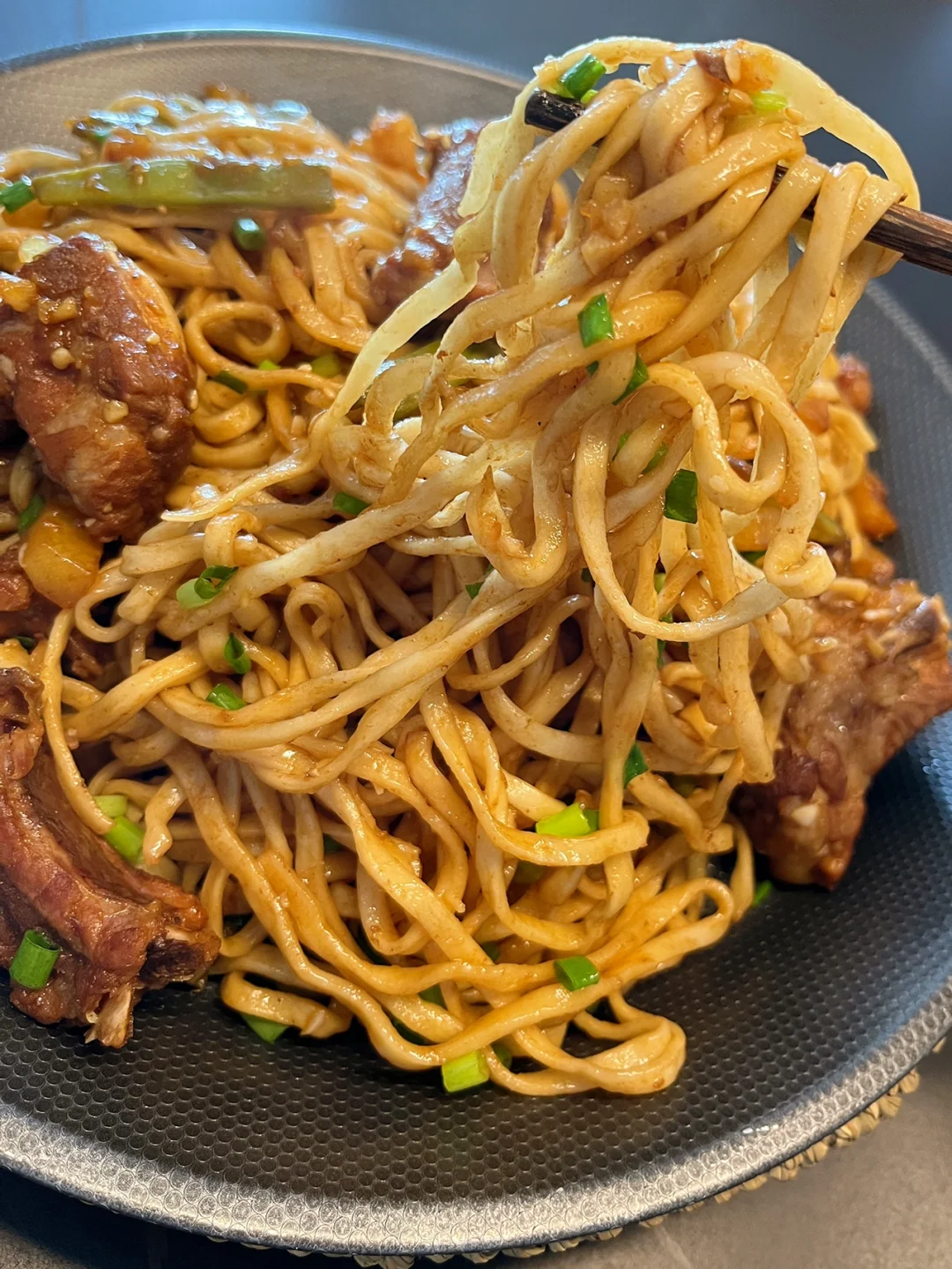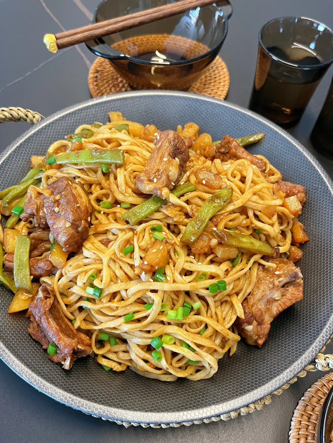 跟儿子的晚饭做了排骨豆角焖面~妈妈的快乐很简单~孩子不生病,睡觉睡的香,吃饭吃光光! 对了。焖面之前发过教程哦~