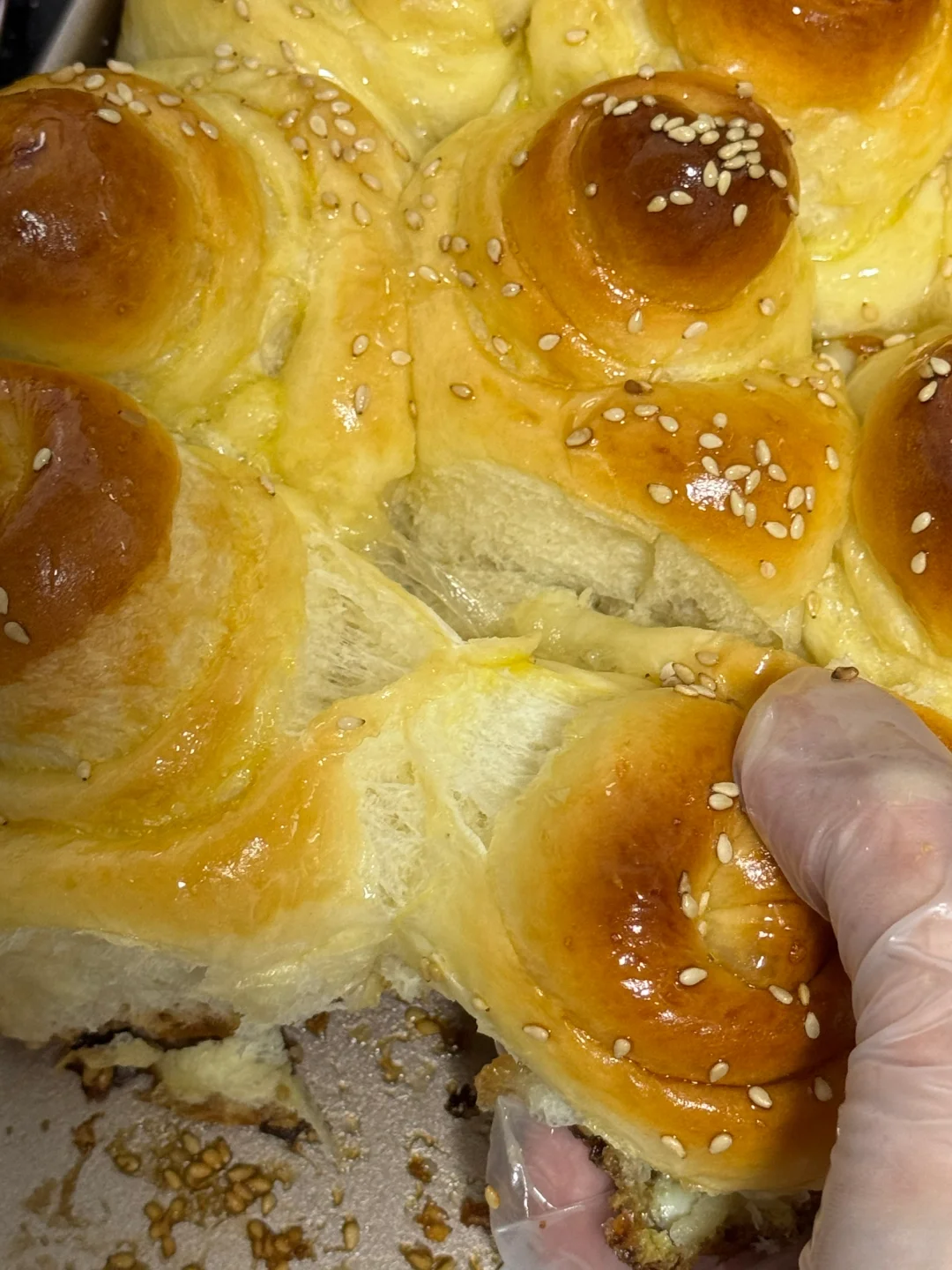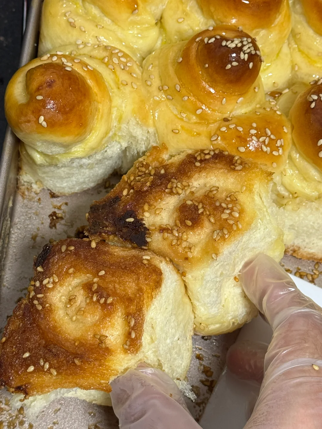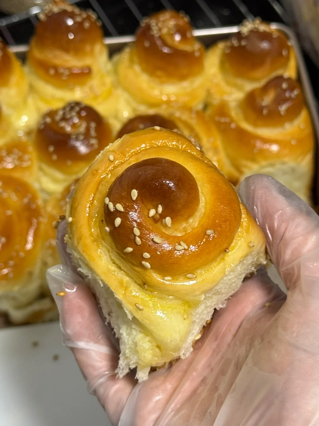 🌷底部各个酥脆,面包体柔软拉丝,自己做的一点都不腻,超级好吃!赶紧去试试吧[哇R]