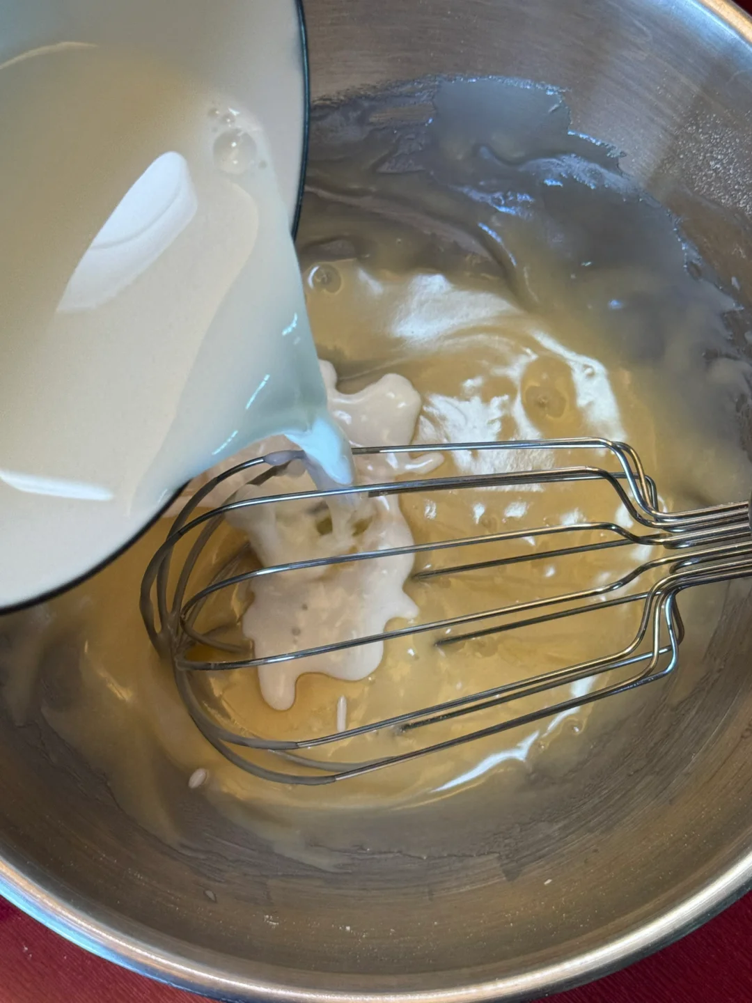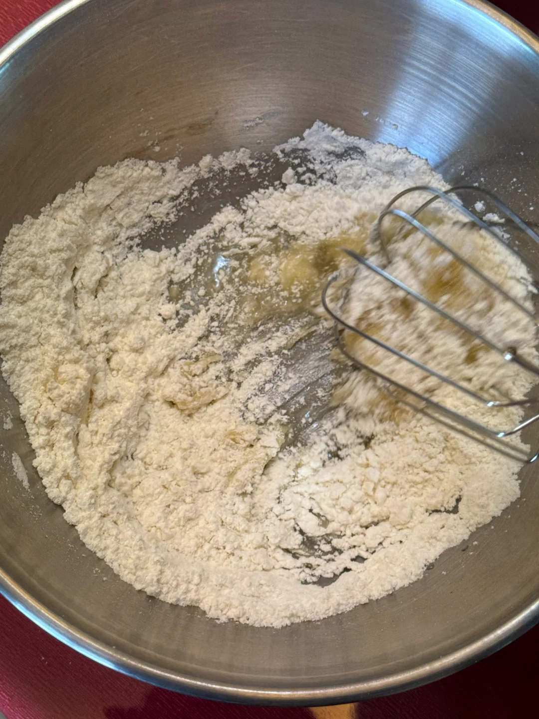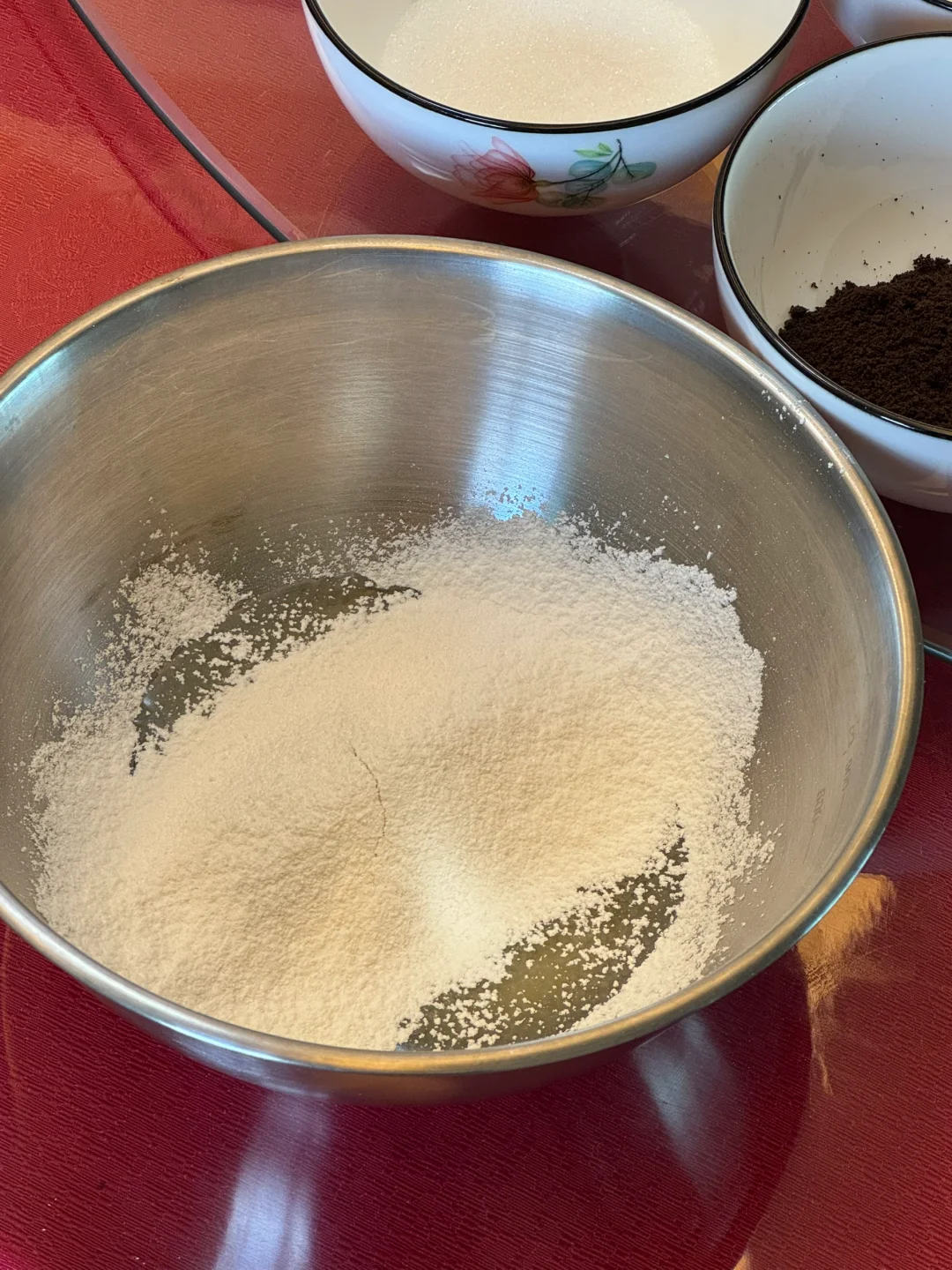 1.玉米油、过筛低筋面粉(这样就不用担心起筋)随意搅拌不用考虑手法。