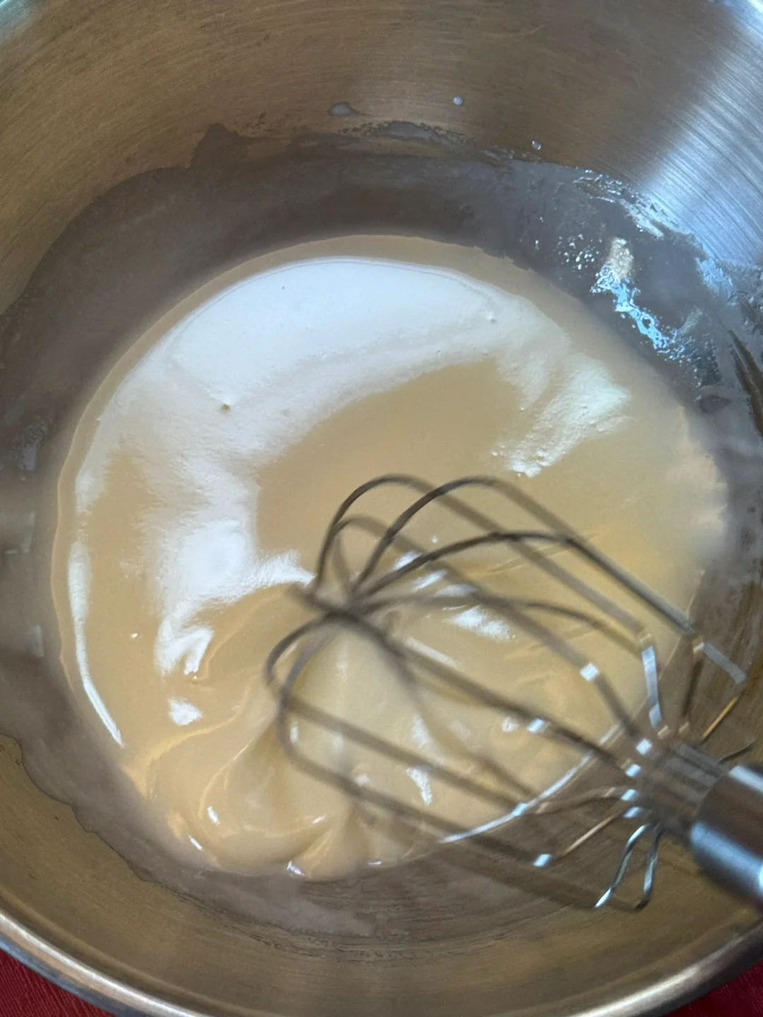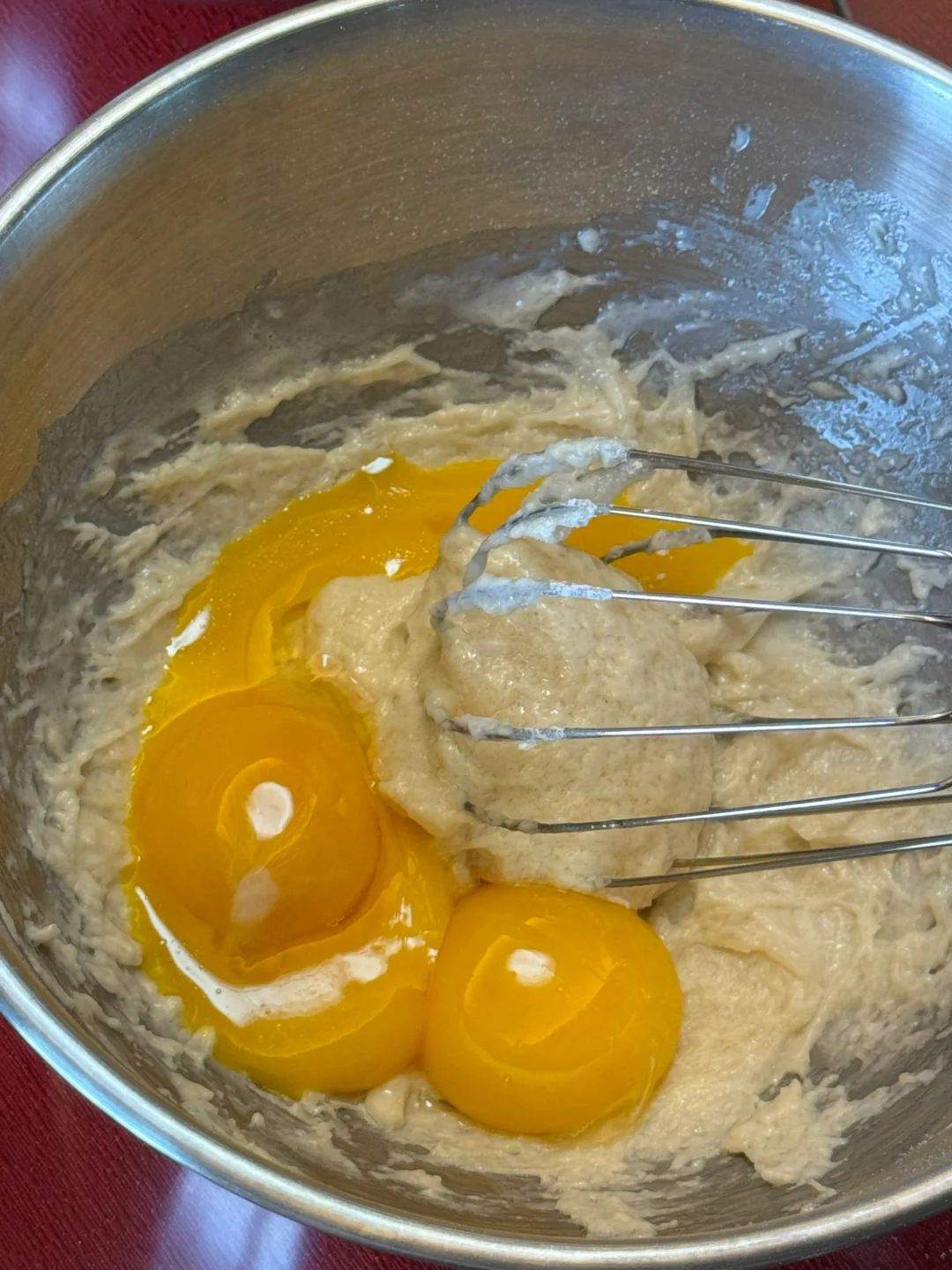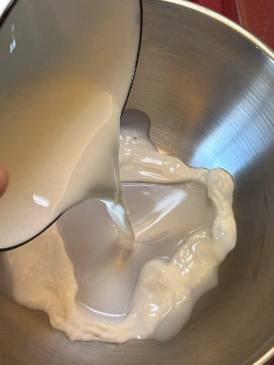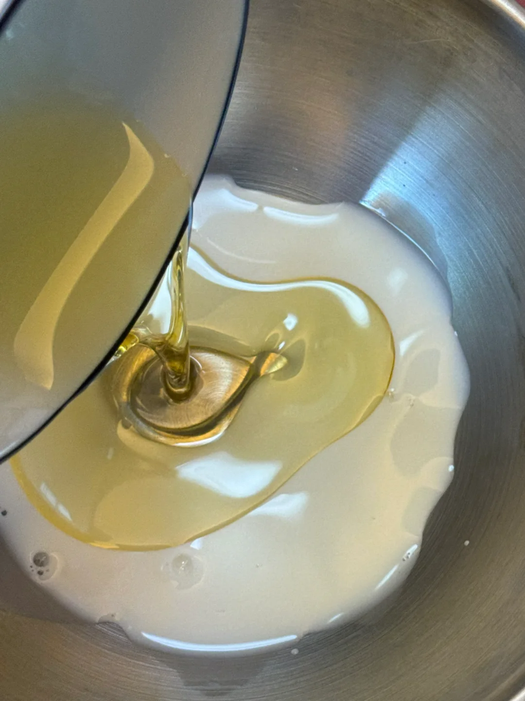 1.纯牛奶、玉米油搅拌至乳化,筛入低筋面粉,搅拌至无干粉。