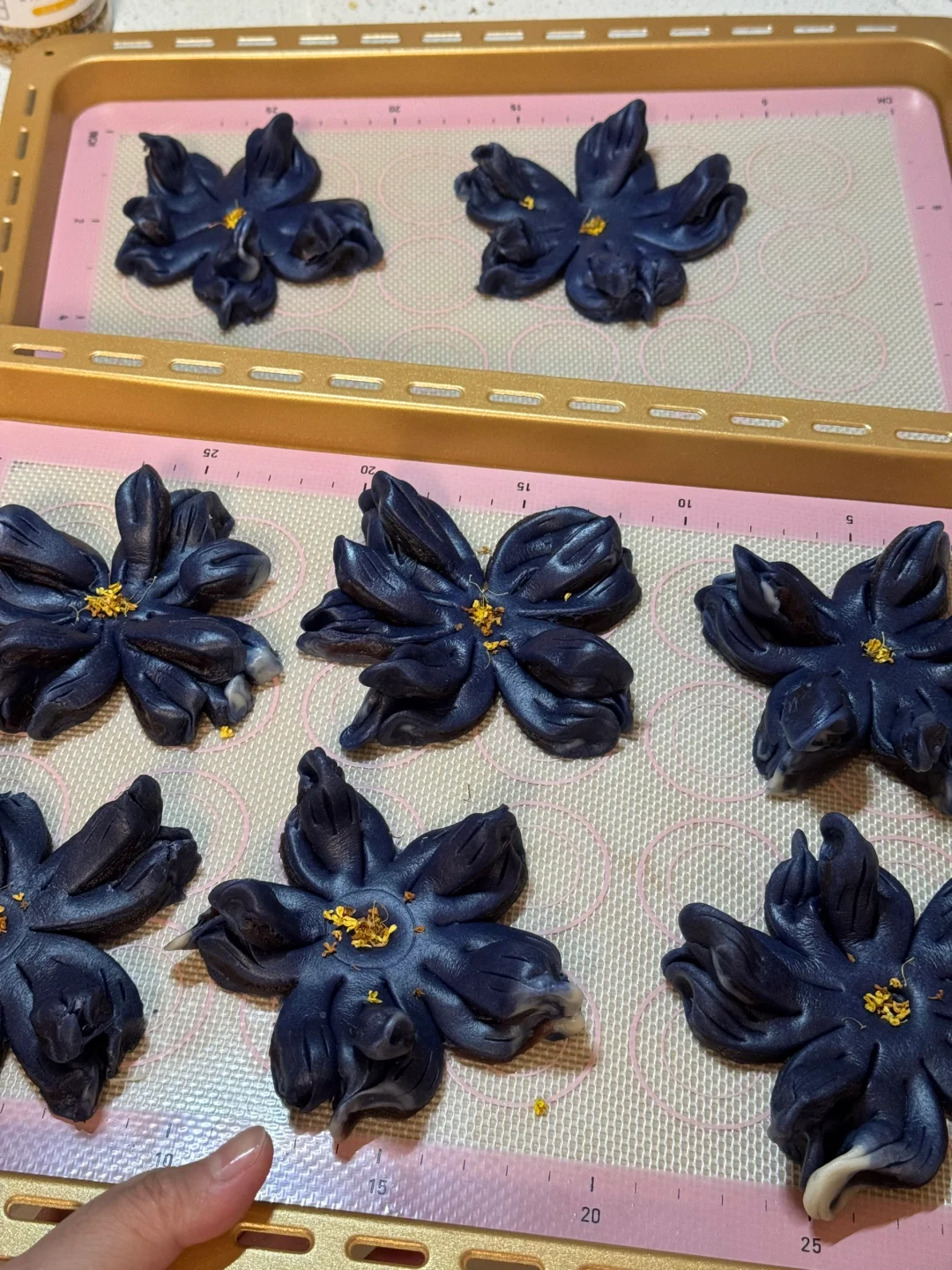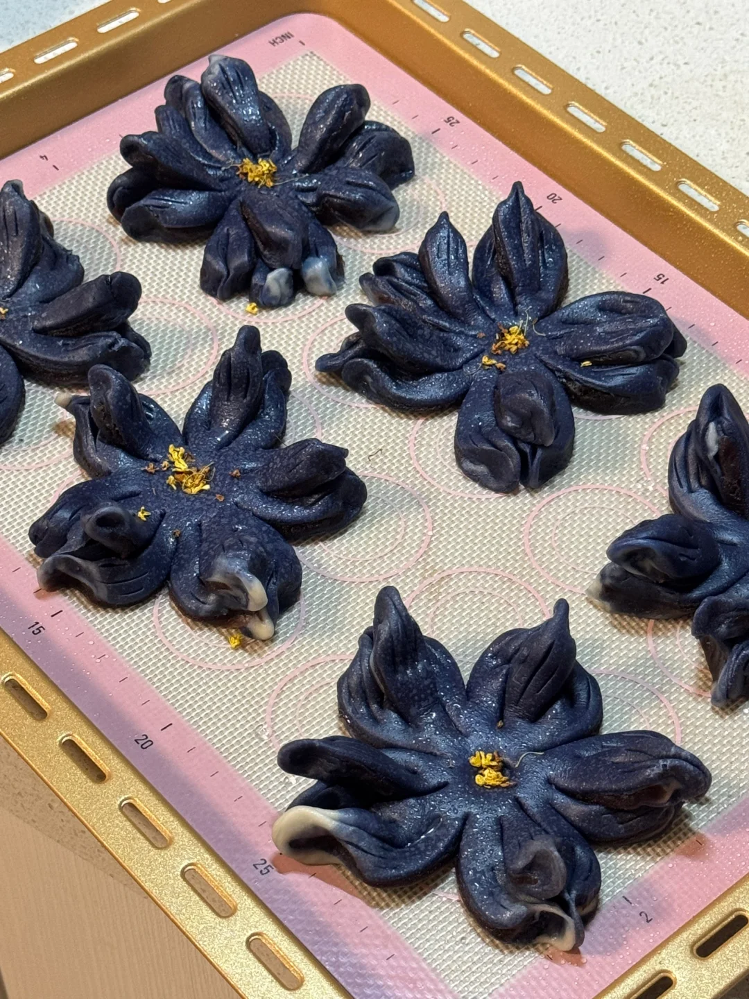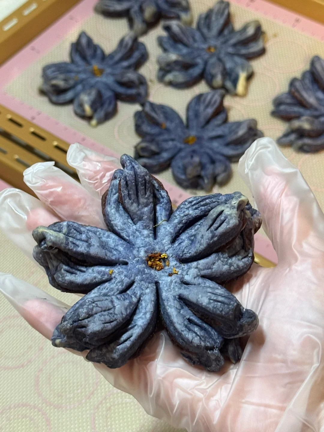 5.烤箱提前预热,160度烘烤20分钟,这一份花酥真的是做了舍不得吃系列,颜值太高了!!!
