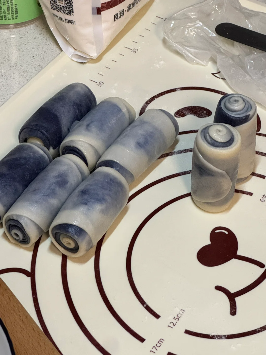 1.油皮从冰箱拿出拿出,揉几下会出现粗膜,均分成8份,油酥也均分成8份,油皮包入油酥(用虎口的位置给他收口就可以了)油皮状态好是很软很软的。
