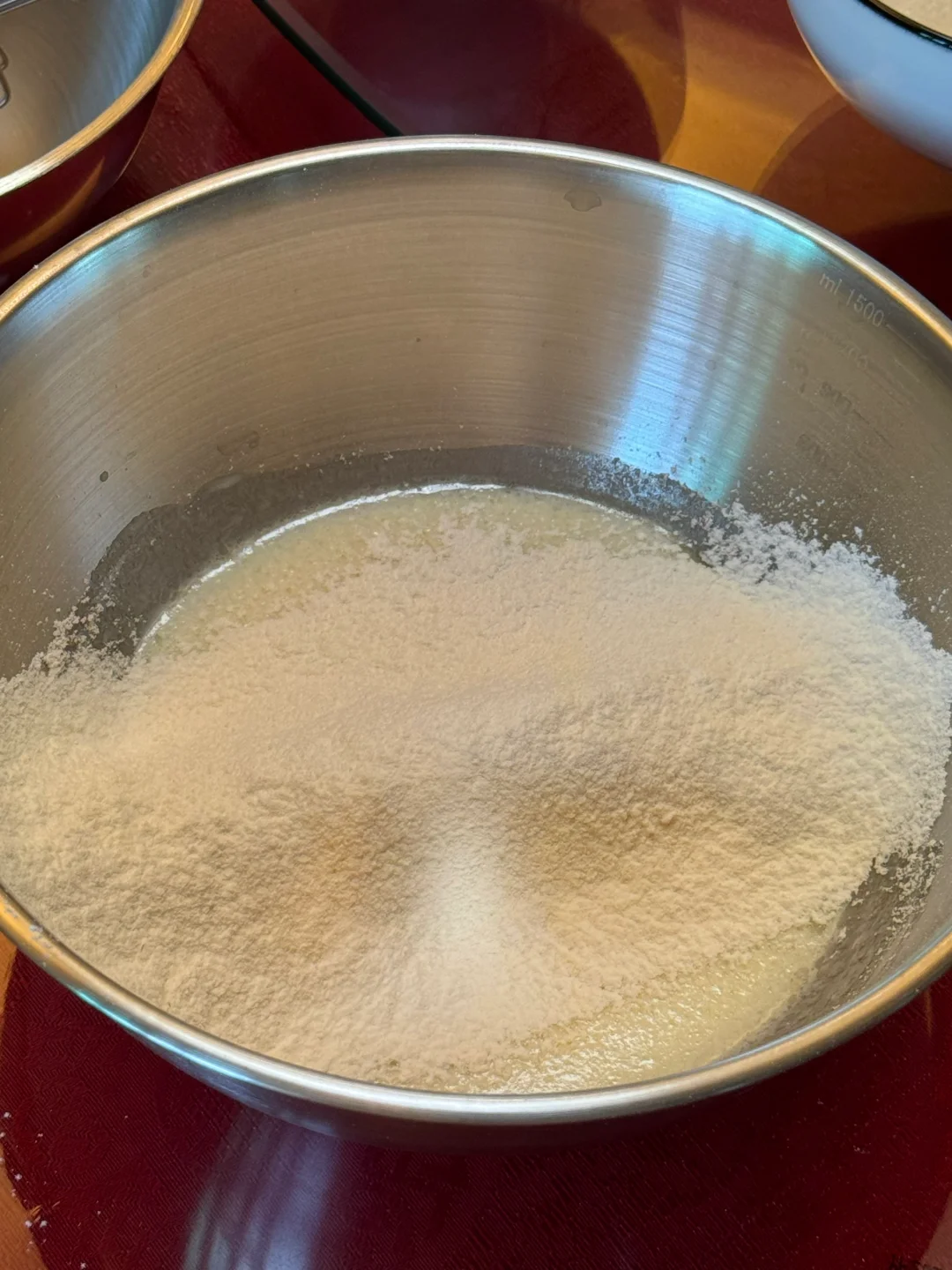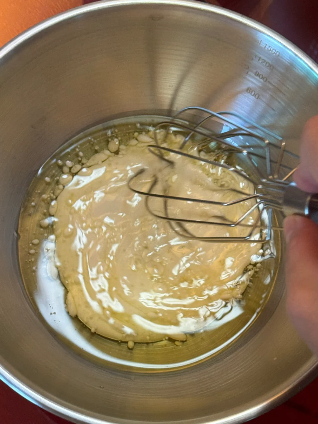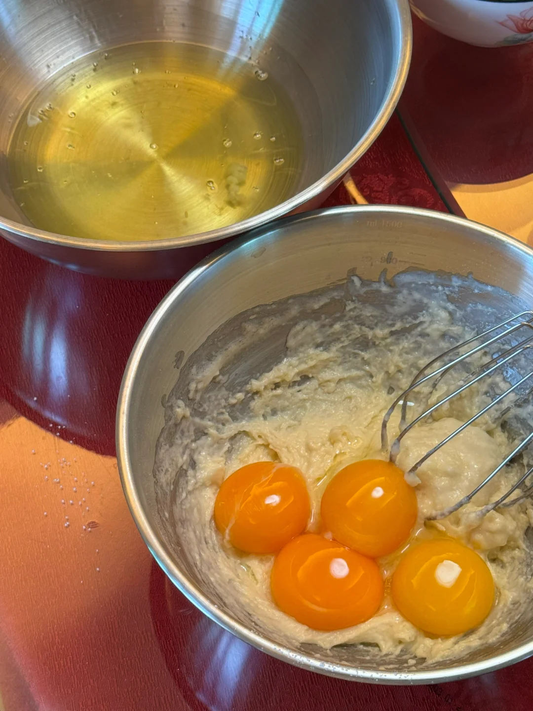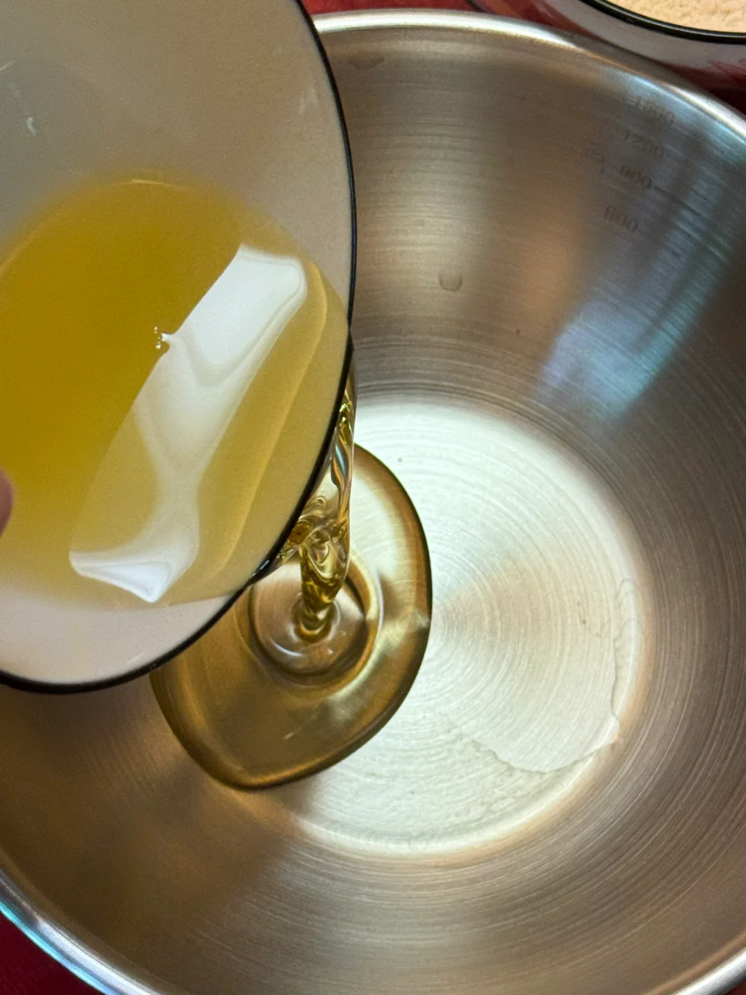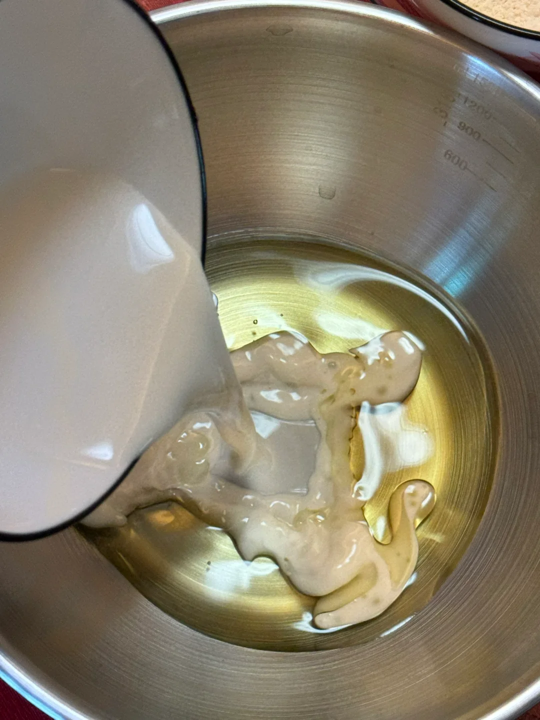 🌷做法:1.玉米油,纯牛奶搅拌至乳化。