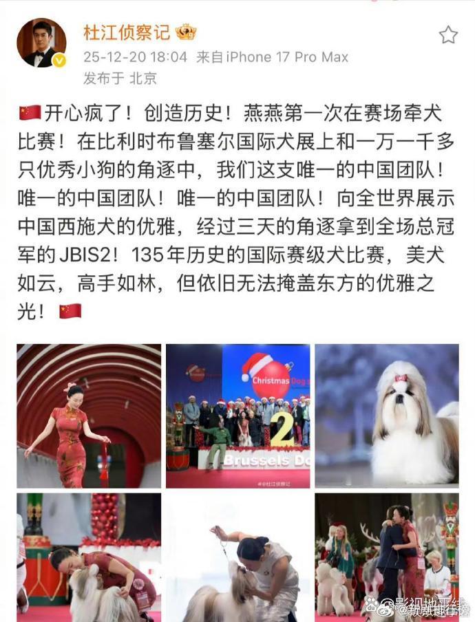 霍思燕爱犬在国际比赛夺冠 霍思燕不仅在荧屏上优雅,今天她与爱犬一起在犬展上大放异彩!这一骄人的成绩让人期待她更多的宠物活动,太了不起了!