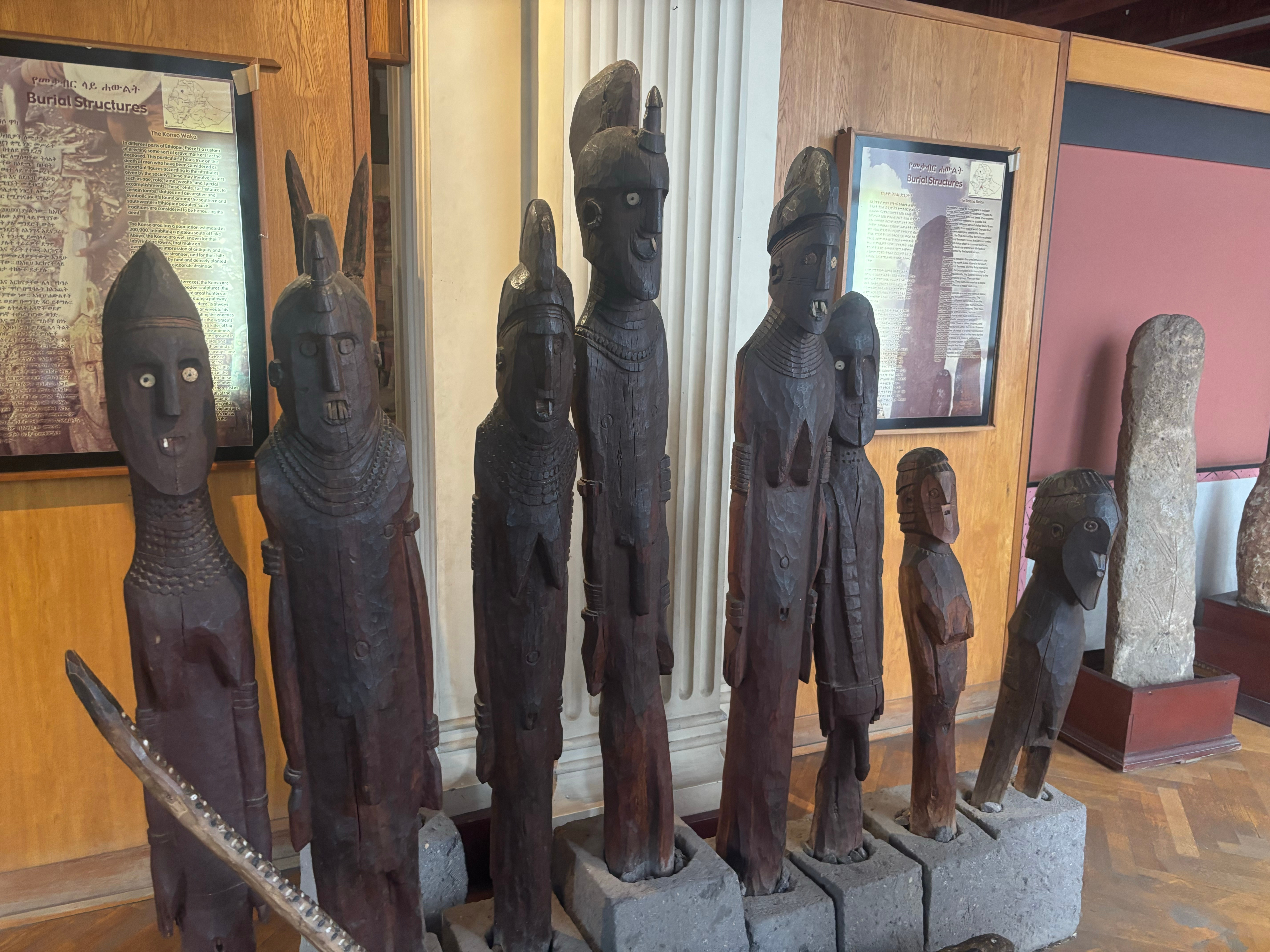 埃塞俄比亚历险记 5 大学闲逛既然翻译来陪我逛,那我就请他吧!这个民族博物馆竟然有三层,展品还是相当多的,花了几十块钱,也可以接受。翻译给我介绍,说民族博物馆里有第一代埃塞王皇帝的房间,皇后的房间,还有一些木质人。第三层是一些基督教的教会文物,反正我也看不懂。这些文物都是古老的,而且我看也没有什么防腐保护措施,至少我们是能手摸的。这要是在国内至少要放在玻璃中吧!再好的文物,被人手摸多了,也要氧化。二楼楼梯口有一只仿真的狮子,估计是真狮子的皮,又填草仿真做出来的。我也拍了一张照片。在二楼楼梯口,还有一张埃塞俄比亚反对意大利侵略的大合影,我听翻译说,是当时的反抗军战士的合影。在一间房子里还有许多鼓,可以说是各种鼓。我们转了40分钟就转完了,虽然花了点钱,但收获也不小,也算物超所值吧!我之前旅行,总想着性价比,用最少的钱,看最多的景点,现在我也变了,我这一辈子可能就来这一次,能看的都看看,多花点钱就多花点。只要不破产,我也就不省钱了,之前总是穷游,苦的北都不认识,这次我就要享受旅行,能去的景点都去,能包车就包车,等回国再去赚钱!转完博物馆,我们又去男女生宿舍看看,小宋和他埃塞的朋友都说,埃塞的女人挺好看的,我就打算大学里看看。我坐在宿舍门口的一个广场台阶上,看着来来去去的年轻男女学生,个人感觉有的还行,但总体跟我审美有点差距。可能,我受不了这种黑皮肤,还有他们的卷发,其实,埃塞女孩身上没有味道,至少从她们身边经过,跟国人也差不多,只是肤色和头发不习惯。我们在大学里的男女宿舍逛完,就去了学校的一个咖啡馆,装修很豪华,环境也不错,我看很多学生在喝咖啡。我问翻译,他告诉我,埃塞俄比亚大学的学费很高,一年几万比尔,他读不起大学,他是靠的奖学金来这所大学上学的,很多学生也是靠贷款,毕业后再偿还贷款。他的朋友是另一所大学的学生,她是学贸易的,他们都属于埃塞的高级知识分子。我在咖啡馆看到学生很悠闲,能来这所大学读书,也算埃塞的精英了吧! 埃塞俄比亚