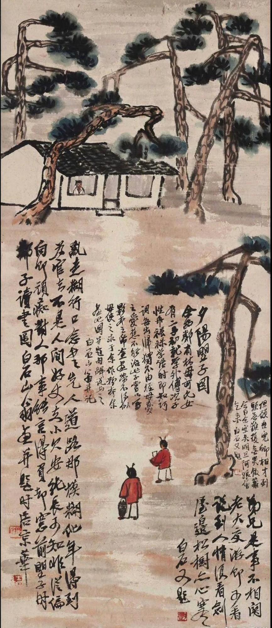 傅抱石《二湘图》 吴楚宝 《百岁图 ​​​》 齐白石 《夕阳望子图 ​​​》 张