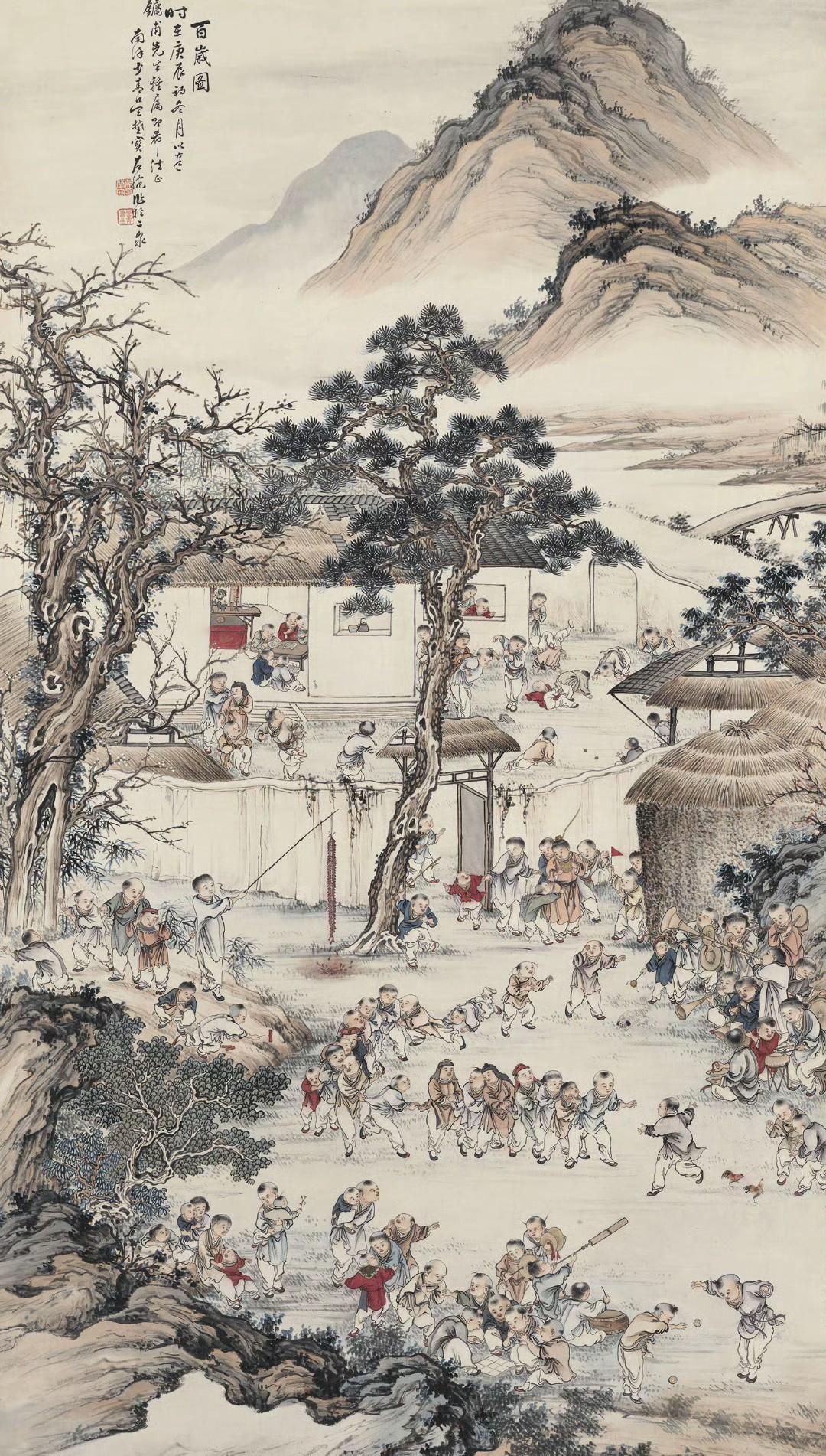 傅抱石《二湘图》 吴楚宝 《百岁图 ​​​》 齐白石 《夕阳望子图 ​​​》 张大千《临溪闲坐》 黄宾虹《九华山色》 黄宾虹《春溪归棹》 黄宾虹《三宿玄鉴图》 黄宾虹《茅舍高论图 》 郑板桥《南山竹图立轴》