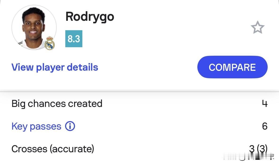 最后拯救阿隆索的可能是他! 对阵塞维利亚,皇马2025年主场收官战,也是2025年的收官战,上半场罗德里戈助攻贝林厄姆头球破门,下半场罗德里戈造点姆巴佩破门 • 自2024年11月3日以来,首位在单场西甲比赛中创造4次绝佳机会的球员 • 自2015/16赛季有数据统计以来,首位在单场西甲比赛中创造4次绝佳机会的皇马球员 罗德里戈以一场出色的组织表现延续着自己的复苏势头 。你告诉我,他配不配得上一个首发?