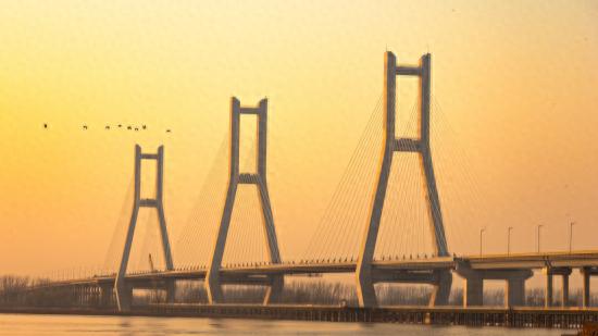 远远望去,东坝头黄河大桥在外形上和南浦大桥极为相似。