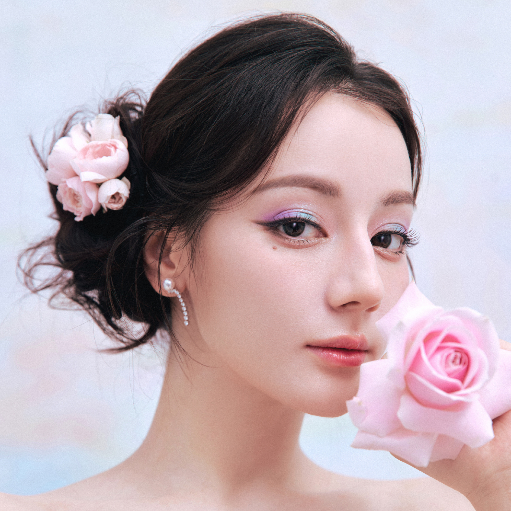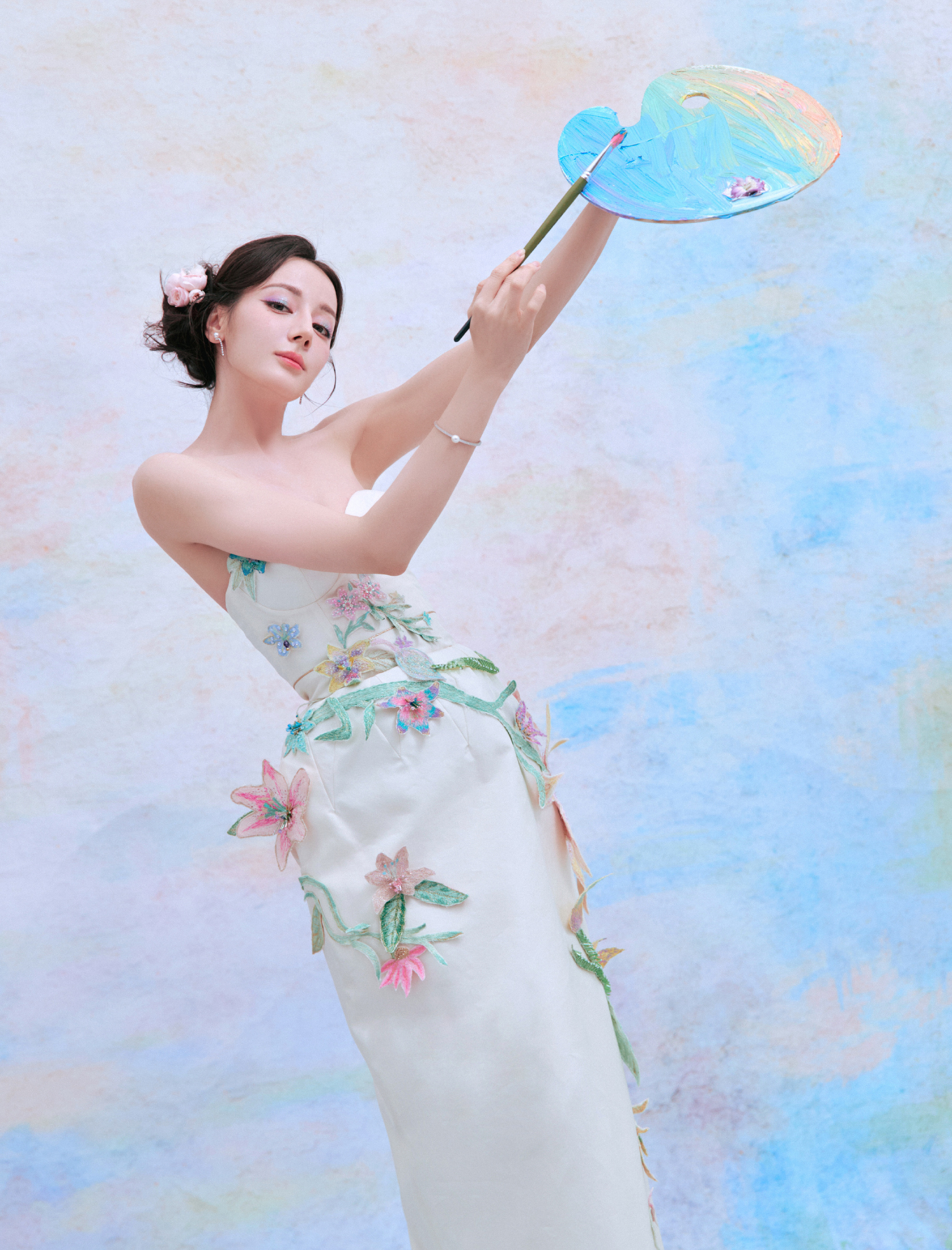 迪丽热巴鲜花裙妆造,梦幻交织,清新绚丽。迪丽热巴