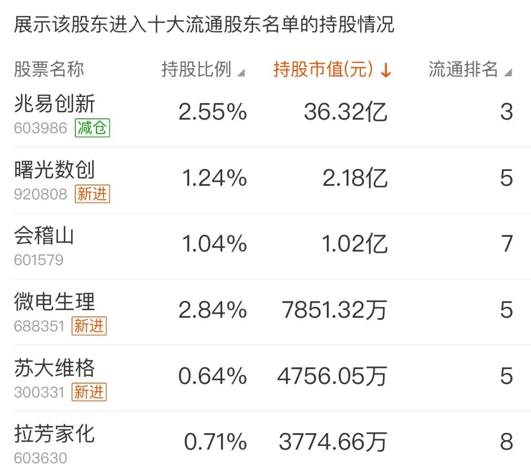 从葛卫东的最新持仓情况看,截至2025年三季度末,葛卫东持有兆易创新市值超过36亿元,持有曙光数创市值超过2亿元,此外还现会稽山等公司。