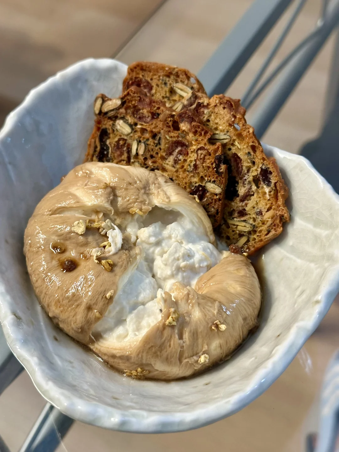 看着确实有点让人摸不着头脑,但仔细想想好吃得非常合情合理:Burrata嫩嫩的马苏里拉外皮配流心的Stracitella馅儿,不就像是一枚溏心蛋吗!