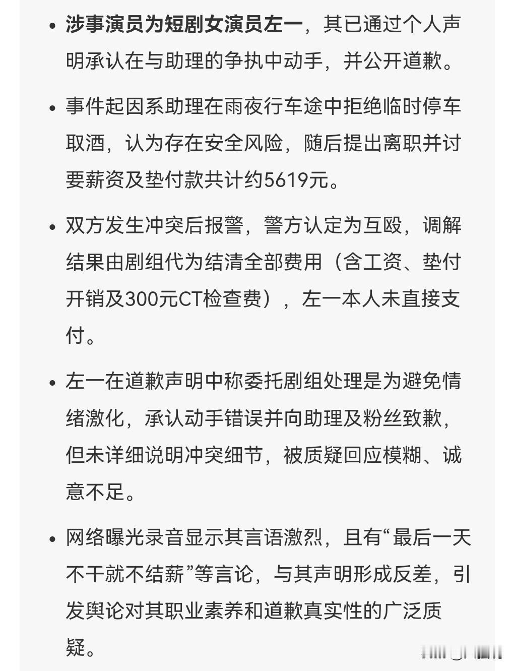短剧演多了?法治社会竟然敢打人,如果还手那就是互殴,这确实离谱了。 一个演短剧的女演员,对助理动手,闹上热搜后选择道歉。 此前女助理选择辞职,然后这个演员不结清工资。 等闹上热搜后,才乖乖的给钱。 这些人就是怕被曝光,一曝光才知道害怕。 这下口碑有点塌了。 不知道会不会影响她的事业。 娱乐行业是非常看重人品的。