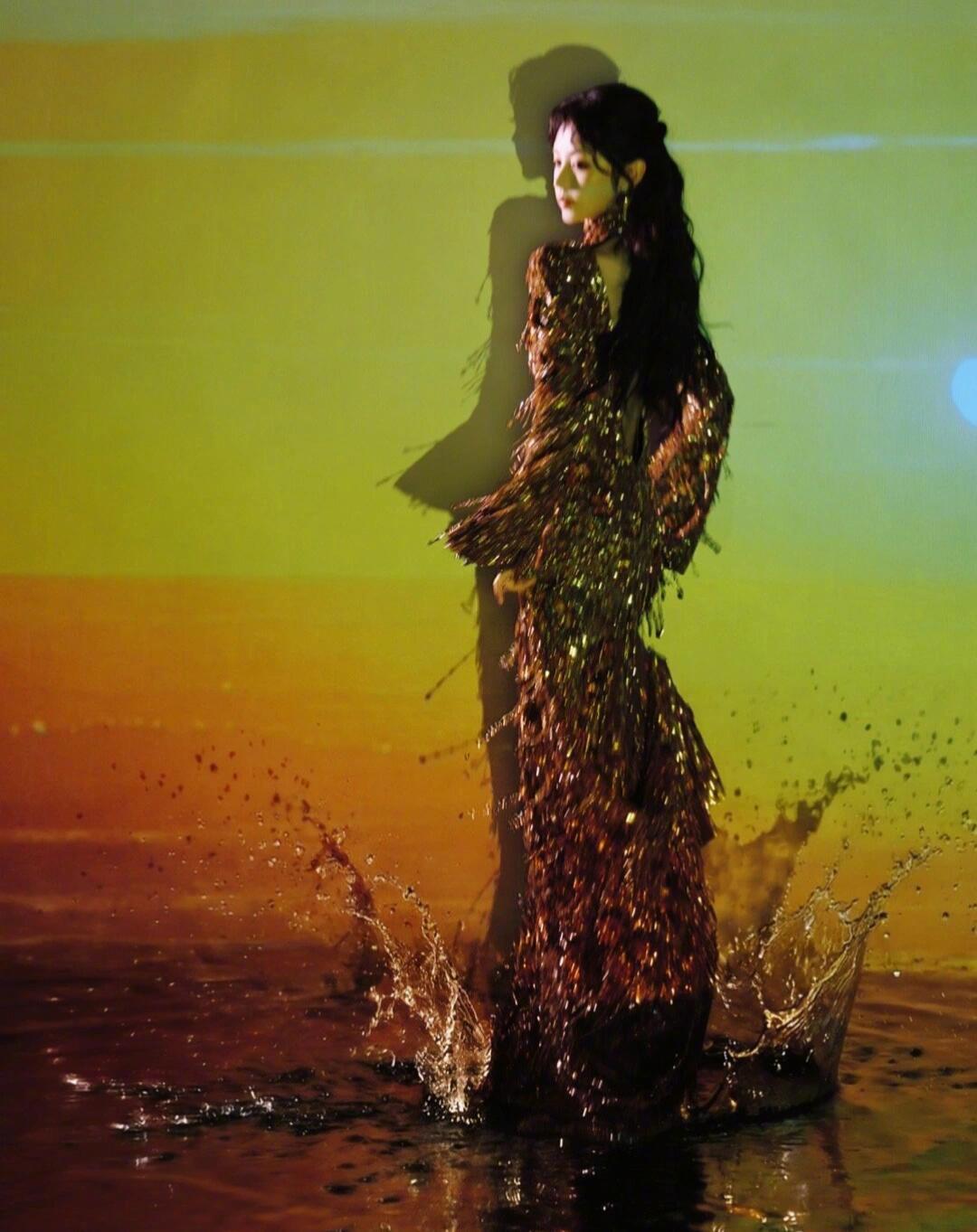 田曦薇鎏金女神降临田曦薇今日腾讯视频星光大赏活动,上身鎏金长裙亮相海岸场景,裙身