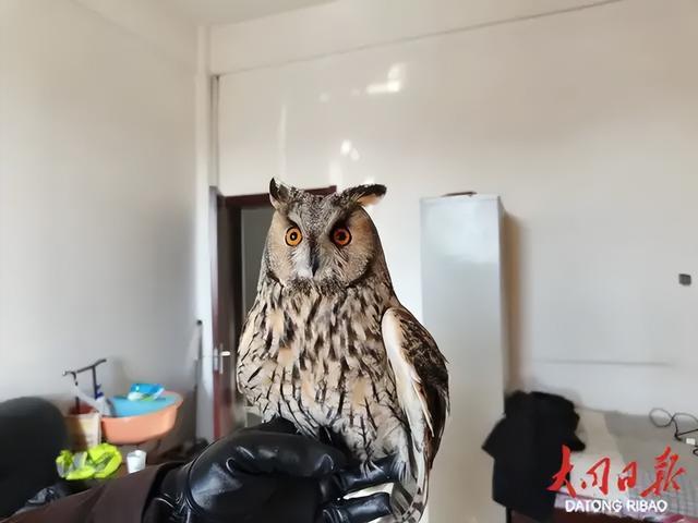 12月17日中午,两只国家二级保护野生动物长耳鸮(俗称猫头鹰)和红隼误入大同云冈国际机场飞行区,被拦鸟网缠挂导致翅膀擦伤无法飞翔。巡查员尚增磊、姚东明第一时间将其救下,并联系资深野生动物保护救助志愿者“云中山人”(网名)进行紧急施救。