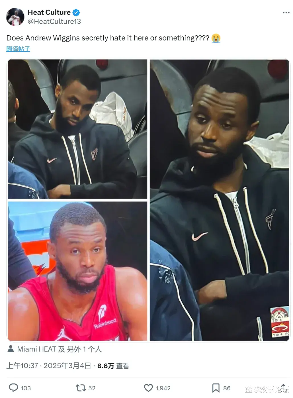 更扎心的是,维金斯因为右脚踝扭伤,已经连续缺席3场比赛。维金斯在热火穿22号球衣,正是巴特勒曾经的号码。希罗接受采访时说道:“巴特勒绝对是热火的传奇人物,但我觉得过去几个月发生这么多事,22号球衣可以再次被穿上。”