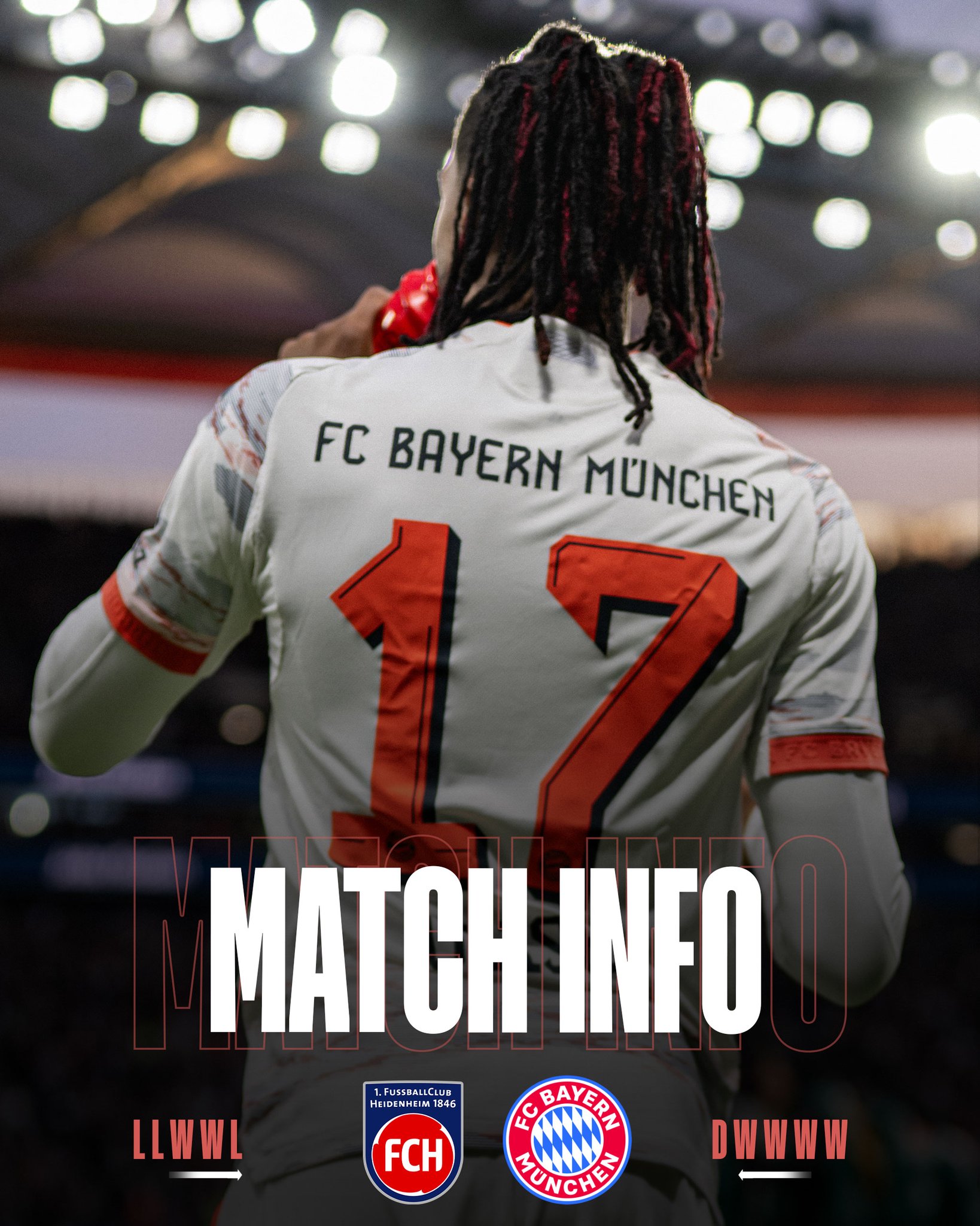 虎扑12月21日讯德甲第15轮,海登海姆主场迎战拜仁慕尼黑。大战一触即发,双方公布了本场首发名单。