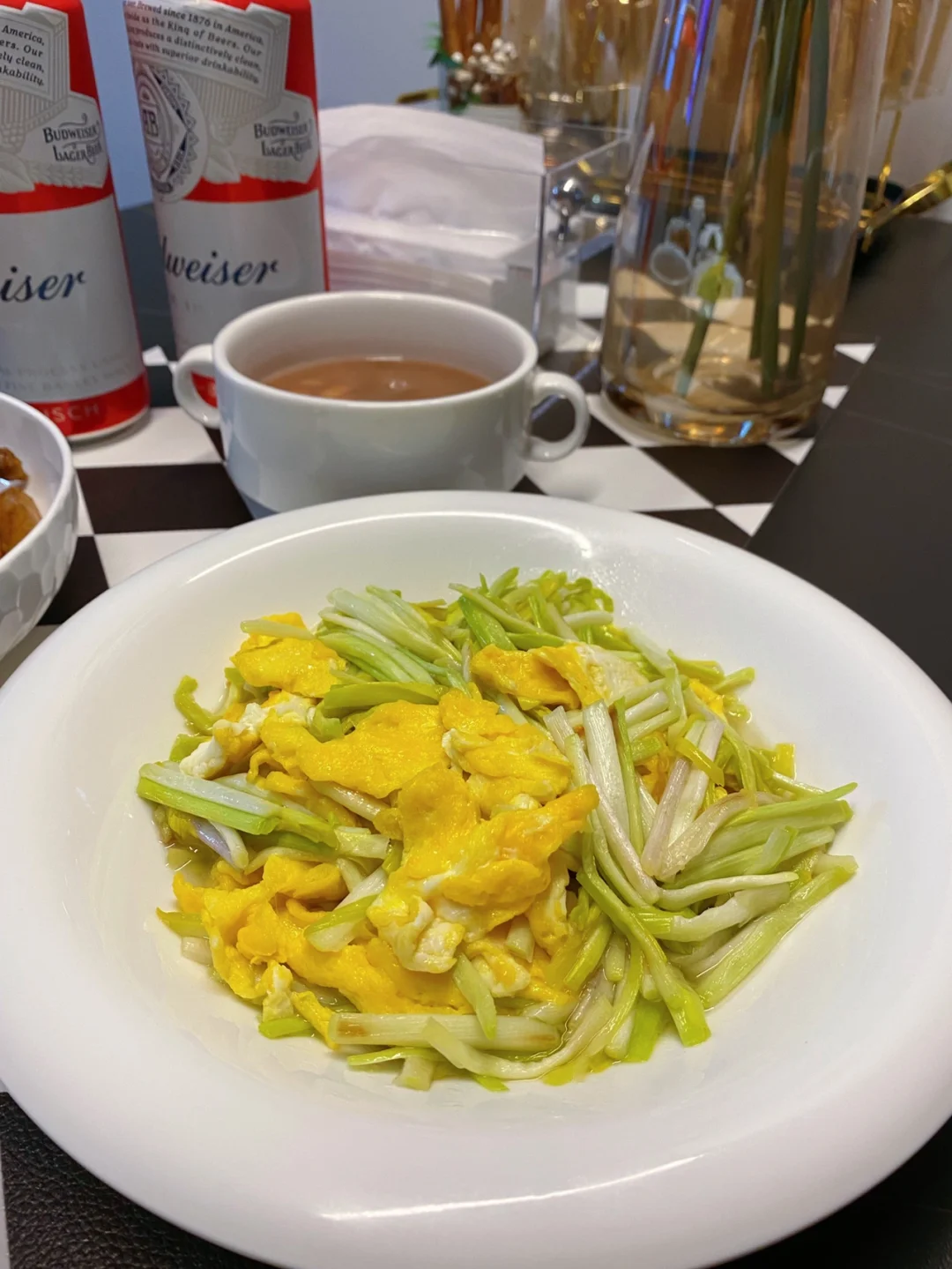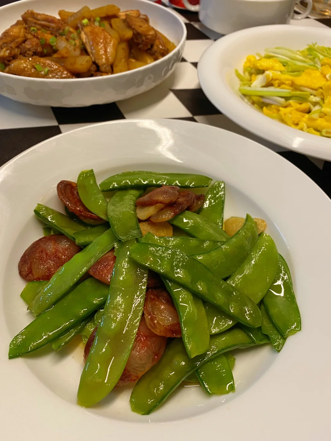 今天的晚饭: 🌈蒜香鸡翅土豆条 🌈蒜黄炒鸡蛋 🌈腊肠炒荷兰豆 🌈八宝粥 ………… 这个蒜香鸡翅土豆条非常好吃,图片有点多,我把教程放在下一篇~
