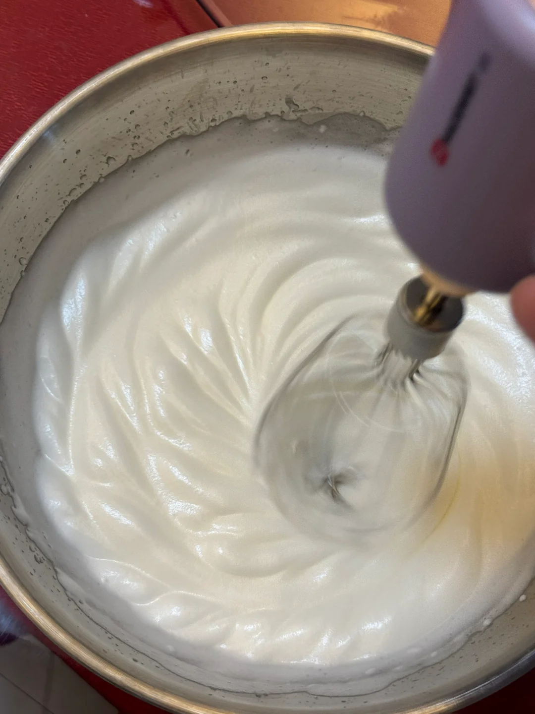 2.蛋白打发至关重要,打发至硬挺的小尖角状态就可以了,也不要打过了。