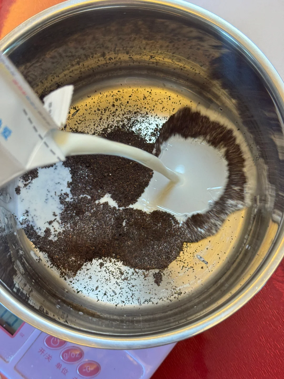 1.纯牛奶加入伯爵红茶粉搅匀加热至边缘冒小泡关火加入玉米油搅拌至乳化。