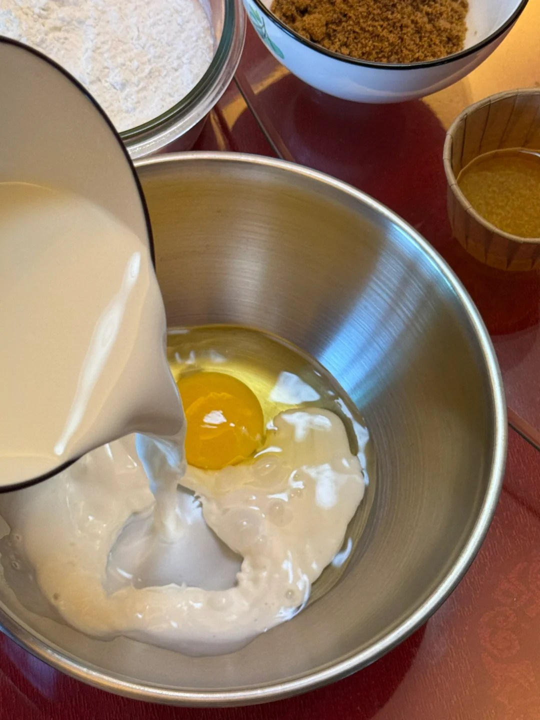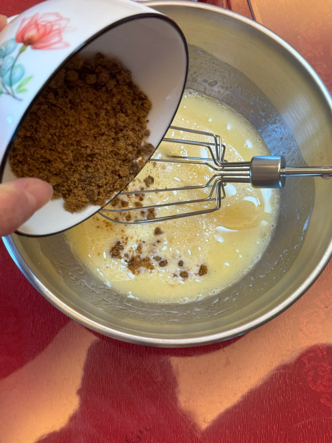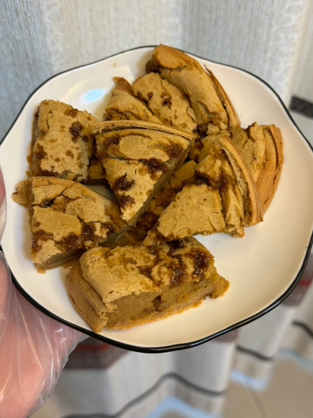 🌷食材:一个鸡蛋,纯牛奶120g,玉米油15g,红糖35g,糯米粉150g,泡打粉1.5g。 🌷以上食材搅拌均匀,倒入模具后再撒上一些红糖(也可以加一些喜欢的果干、坚果) 烤箱提前预热,180度烘烤25分钟。 出炉后趁热吃超级糯叽叽,外脆里糯,赶紧去试试吧[哇R][哇R][哇R]