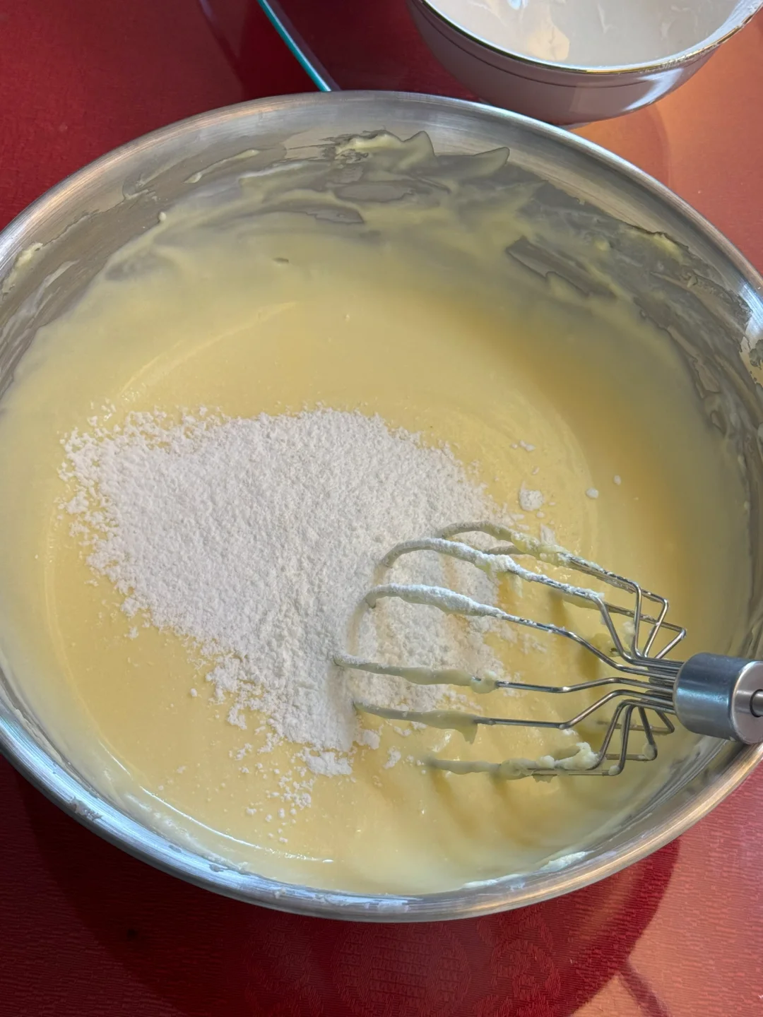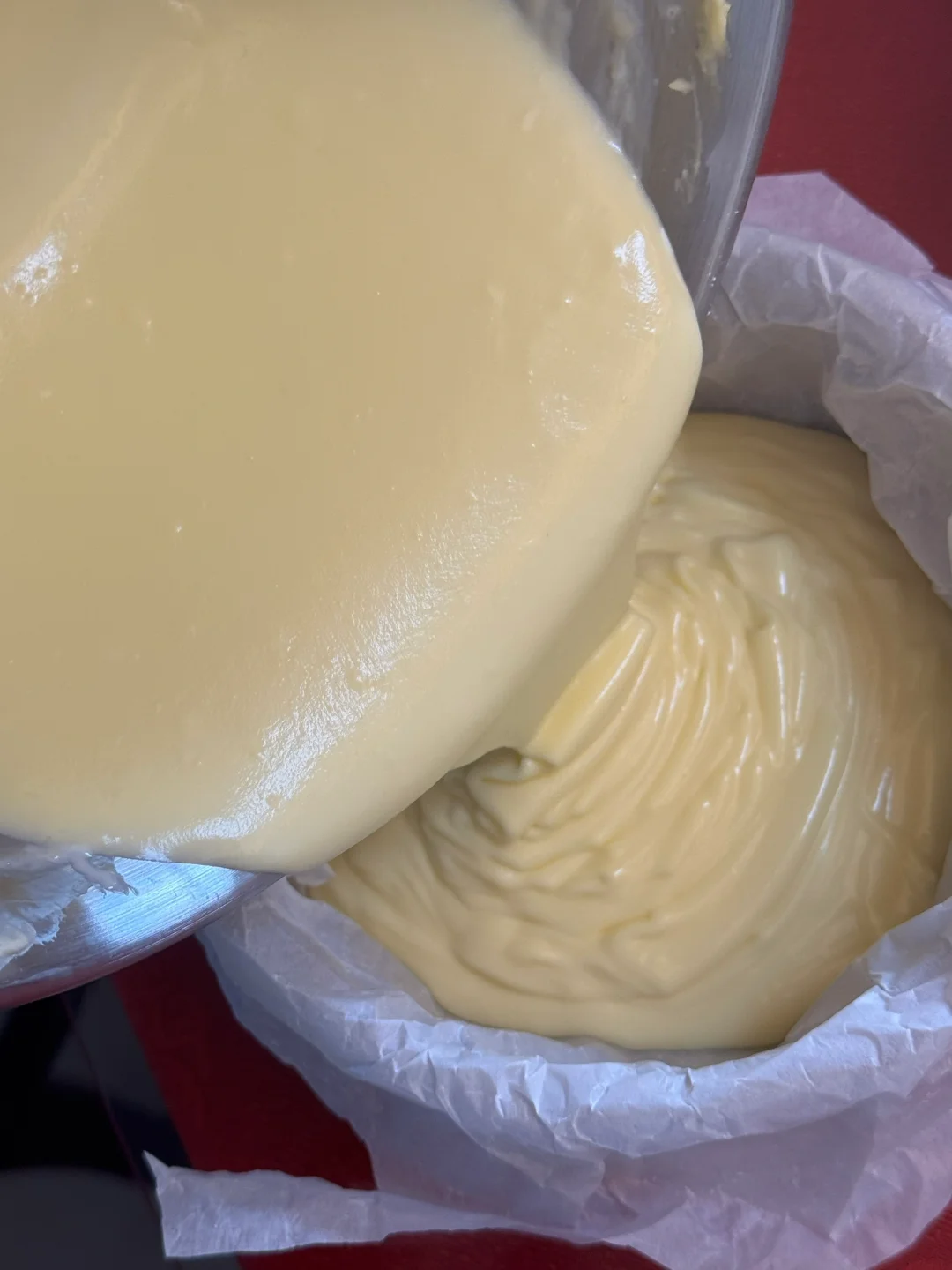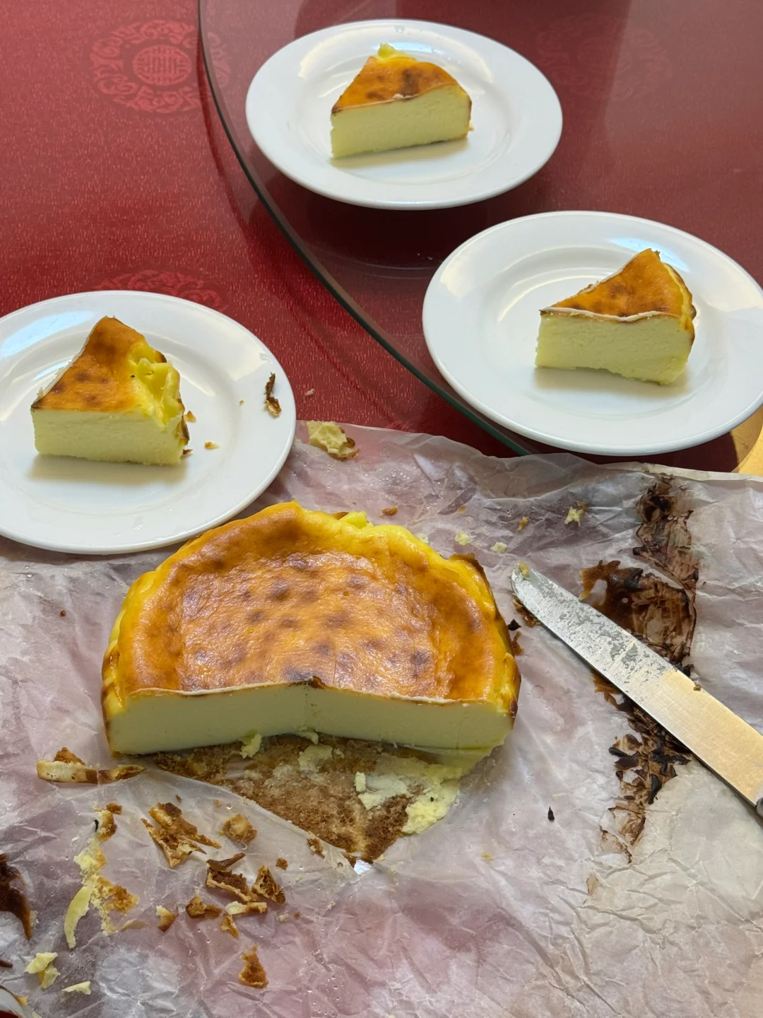 🌷食材:奶油奶酪240g(推荐妙可蓝多,一盒刚好240g)淡奶油(雀巢)150g,常温鸡蛋3个(两个全蛋,一个蛋黄)细砂糖50g,玉米淀粉10g。 🌷做法:1.天气冷可以用烤箱发酵模式30度40分钟软化奶油奶酪。 2.加入细砂糖搅拌至顺滑。 3.分次加入鸡蛋液(鸡蛋提前倒入碗中搅散) 4.倒入淡奶油搅拌均匀,筛入玉米淀粉,搅拌均匀。 5.提前预热烤箱,220度烘烤15-20分钟,出炉晾凉后放冰箱冷藏4小时以上。 🌷吃上第一口就惊艳住了,在家就能完美复刻,快去试试吧[哇R][哇R][哇R]