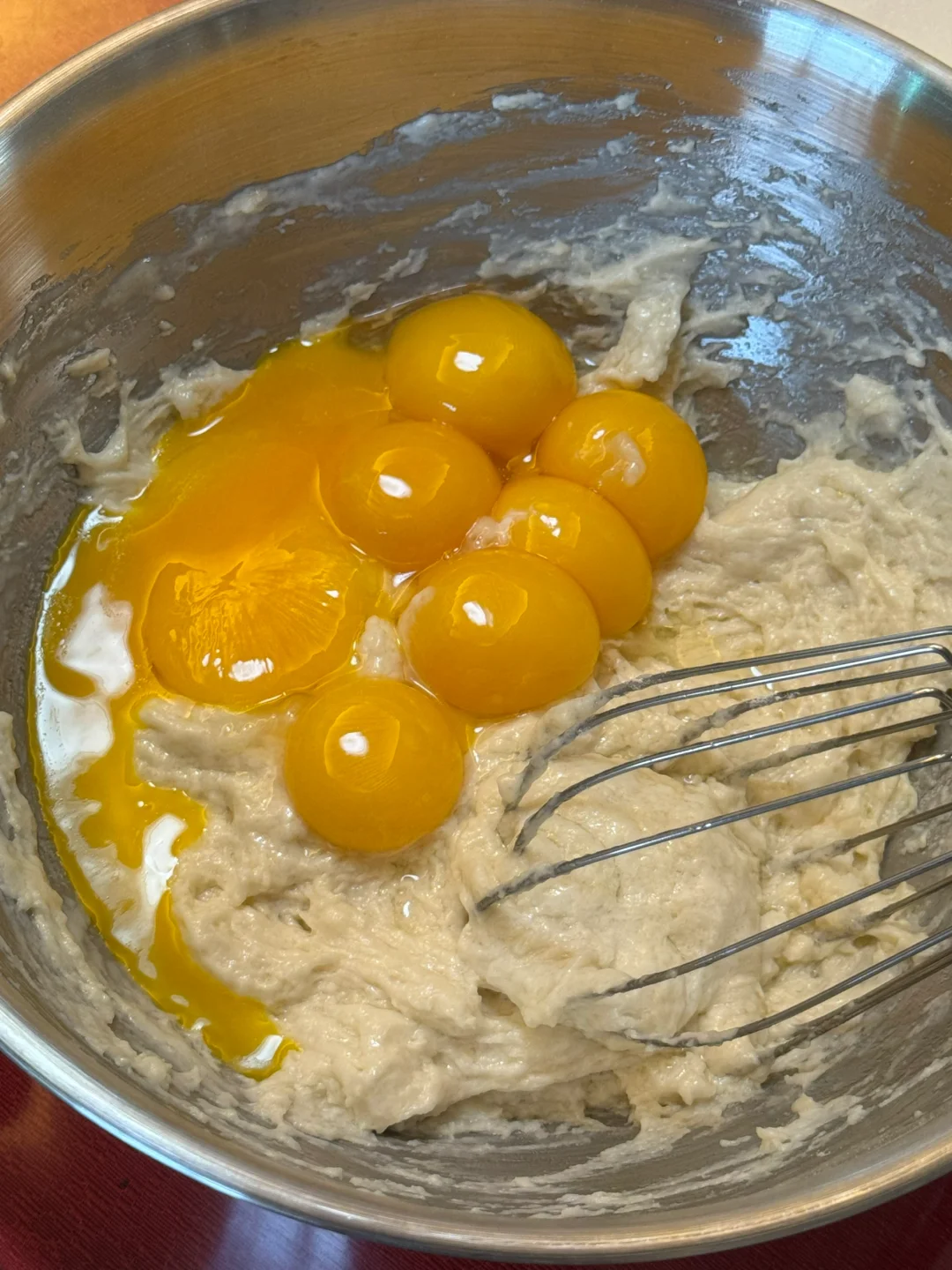 2.与蛋黄搅拌至顺滑(搅拌至提起滴落呈现堆叠)