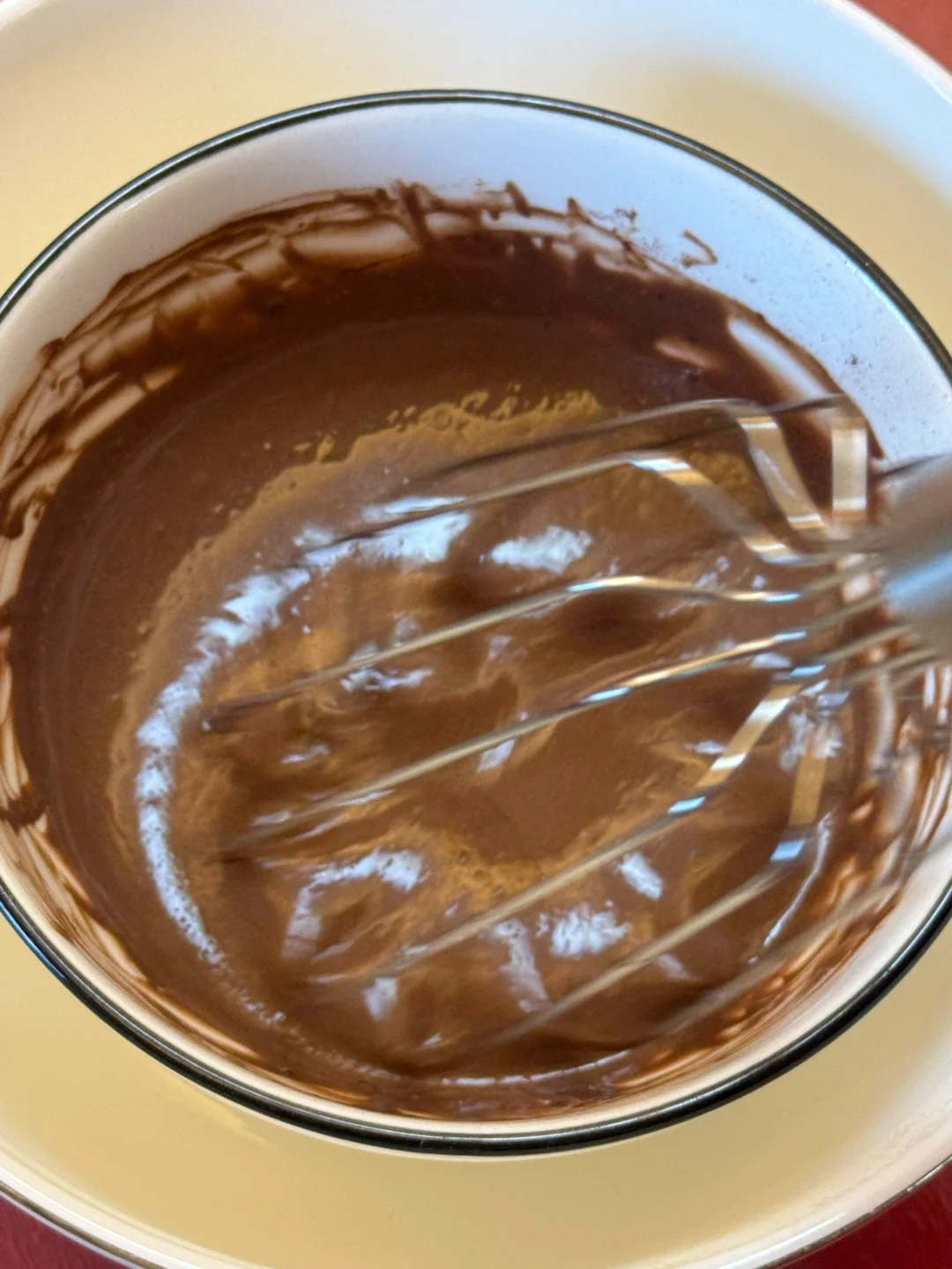 1.先制作可可液,淡奶油50g加热后与可可粉搅拌均匀。