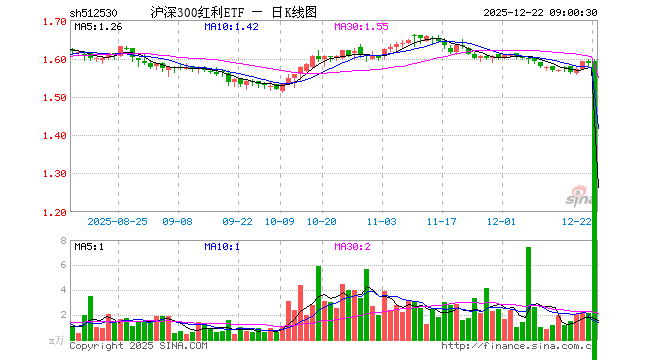 12月19日,沪深300红利ETF(512530)跌0.19%,成交额345.18万元。当日份额减少1100.00万份,最新份额为1.05亿份,近20个交易日份额减少3000.00万份。最新资产净值计算值为1.66亿元。