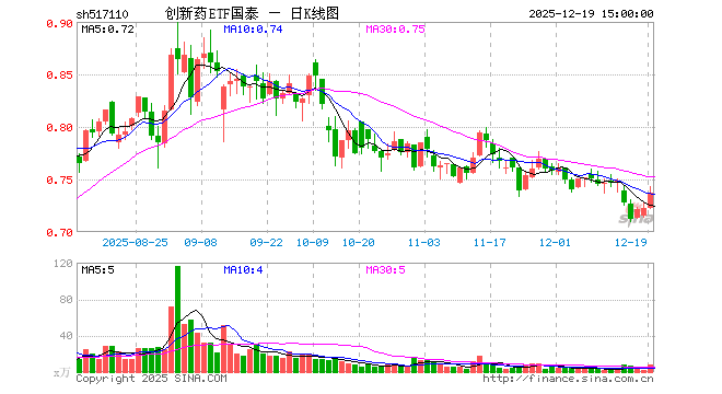 12月19日,创新药ETF国泰(517110)涨2.08%,成交额622.13万元。当日份额减少400.00万份,最新份额为5.73亿份,近20个交易日份额减少1500.00万份。最新资产净值计算值为4.24亿元。