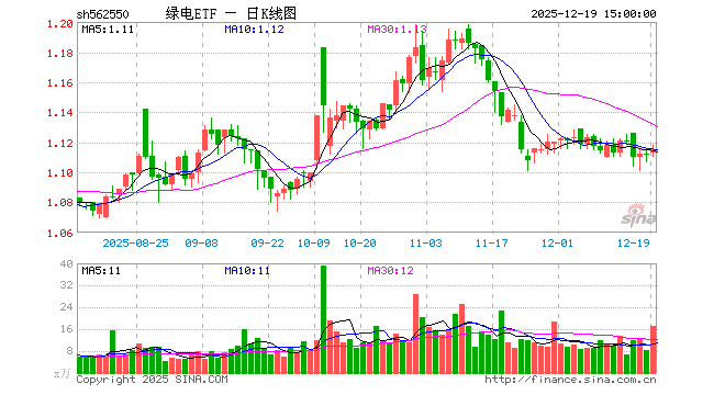 12月19日,绿电ETF(562550)涨0.18%,成交额1923.32万元。当日份额减少100.00万份,最新份额为2.46亿份,近20个交易日份额减少300.00万份。最新资产净值计算值为2.74亿元。
