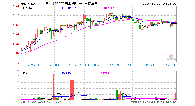 12月19日,沪深300ETF国联安(515660)涨0.30%,成交额3497.90万元。当日份额减少540.00万份,最新份额为6.20亿份,近20个交易日份额减少7830.00万份。最新资产净值计算值为35.05亿元。