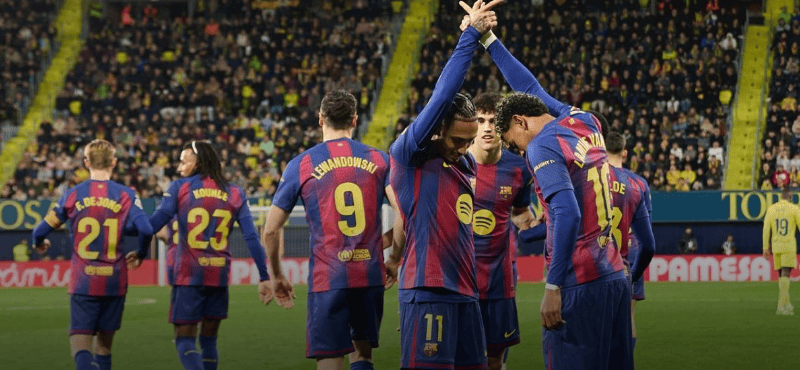 虎扑12月22日讯凭借乔安-加西亚的出色发挥以及拉菲尼亚和亚马尔的进球,巴塞罗那在客场2-0战胜了比利亚雷亚尔,以领先皇马4分的成绩进入圣诞假期,并取得了12月全胜的战绩。