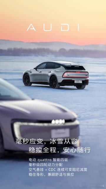 全世界的奥迪e5车主都在盼下雪奥迪E5 Sportback纯电轿跑,凭三电稳定+电动quattro智能四驱,极寒雪境也能驾趣在线。首次OTA升级新增弹射起步动画,郑钦文钦定版同步上市,享万元权益,兼具豪华、性能与智能进化,完美诠释“选电车何必取舍”。奥迪 E5 Sportback冰雪之上游刃有余奥迪E5郑钦文钦定版上市奥迪E5上市享万元现金权益