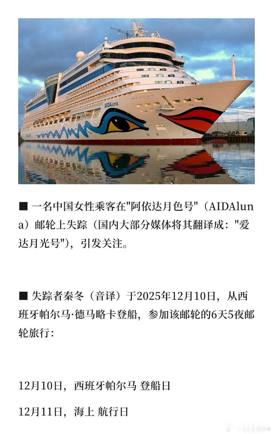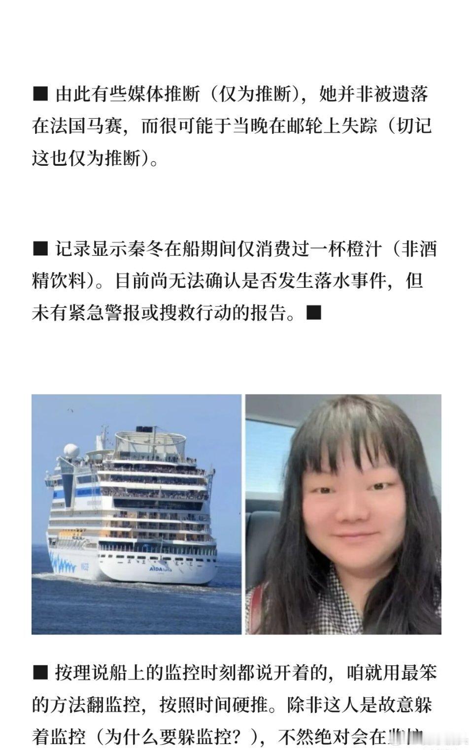 中国女子在欧洲邮轮上人间蒸发人不可能莫名其妙地人间蒸发,希望能够积极调查,看看究