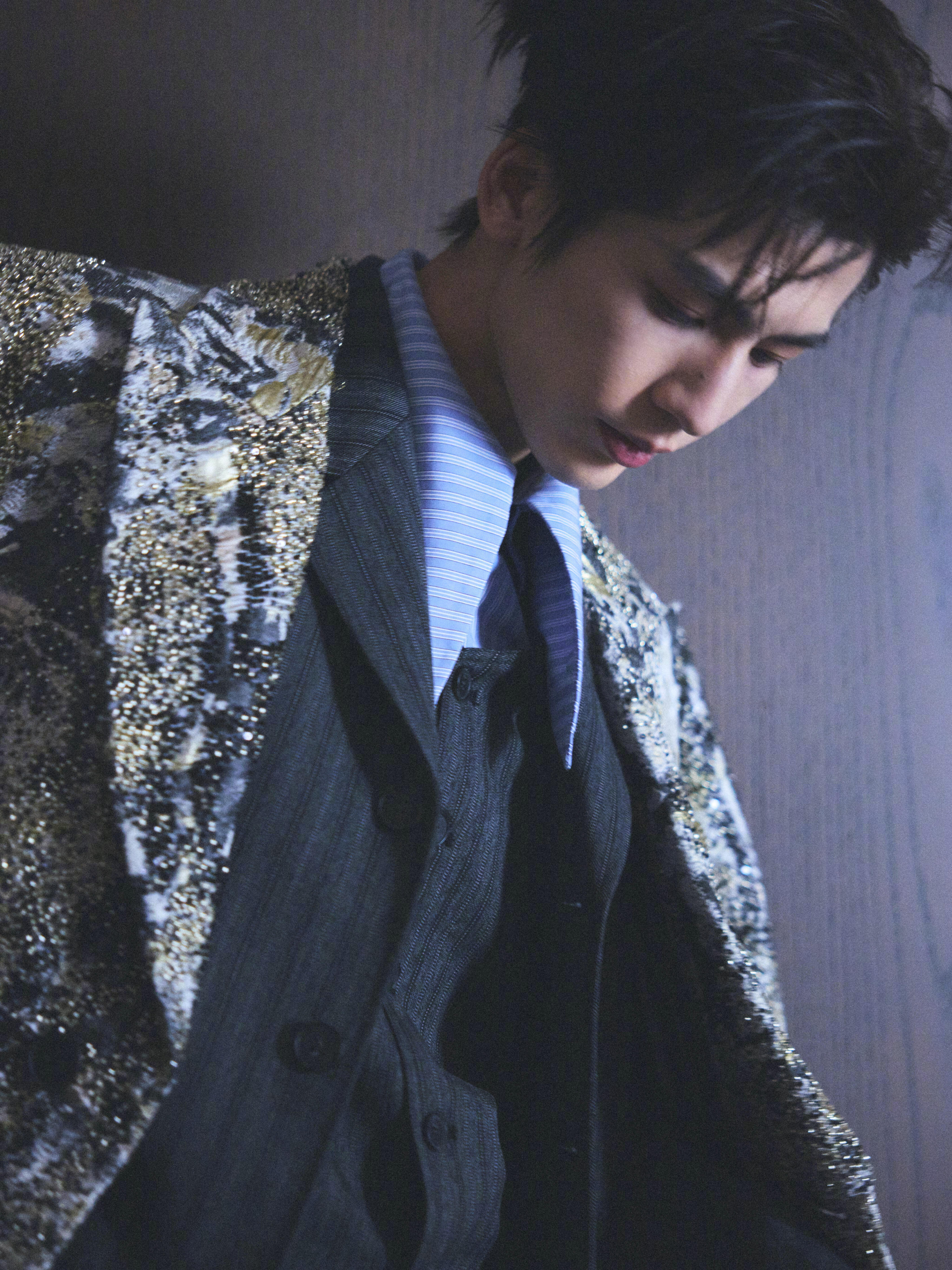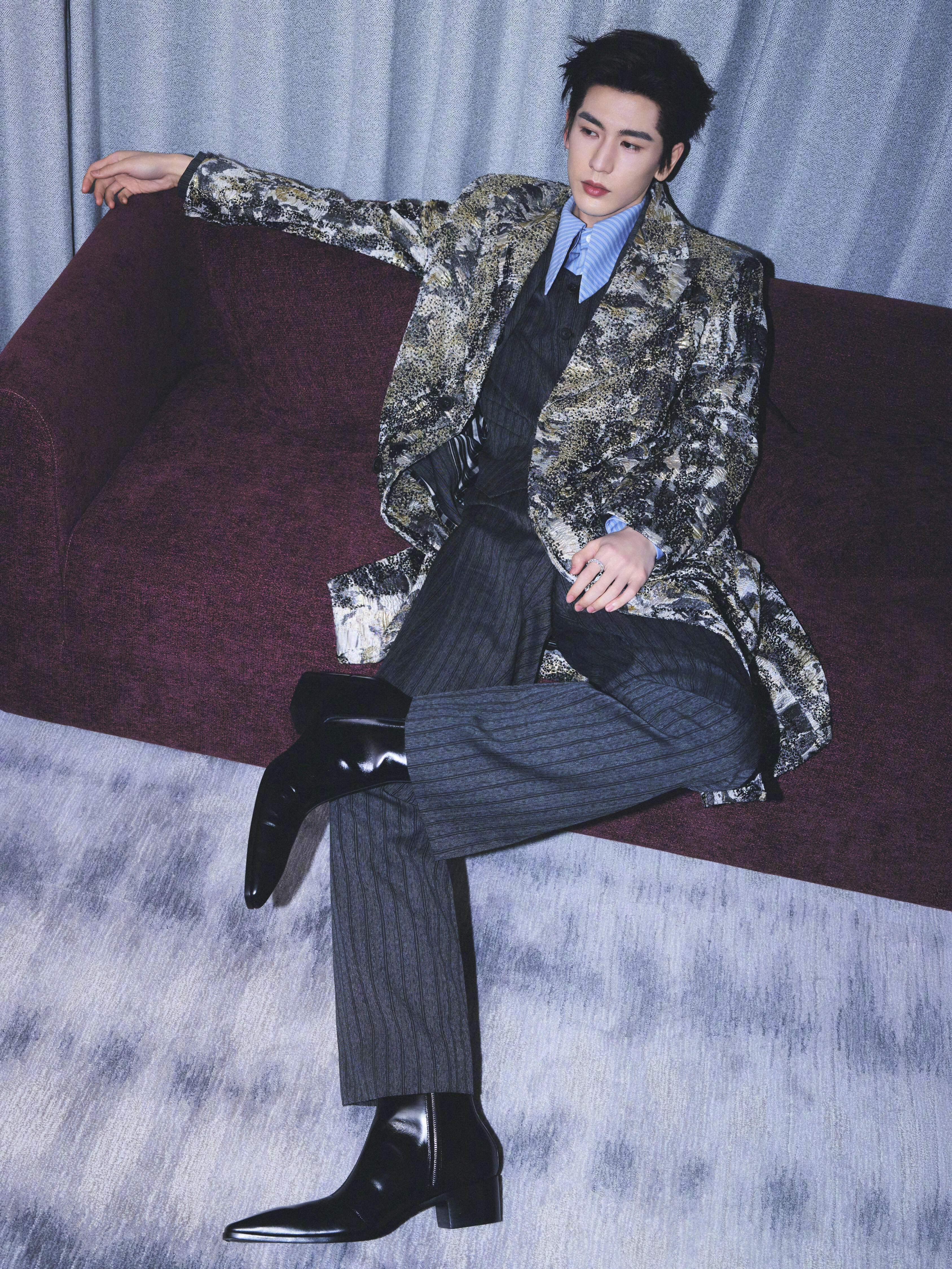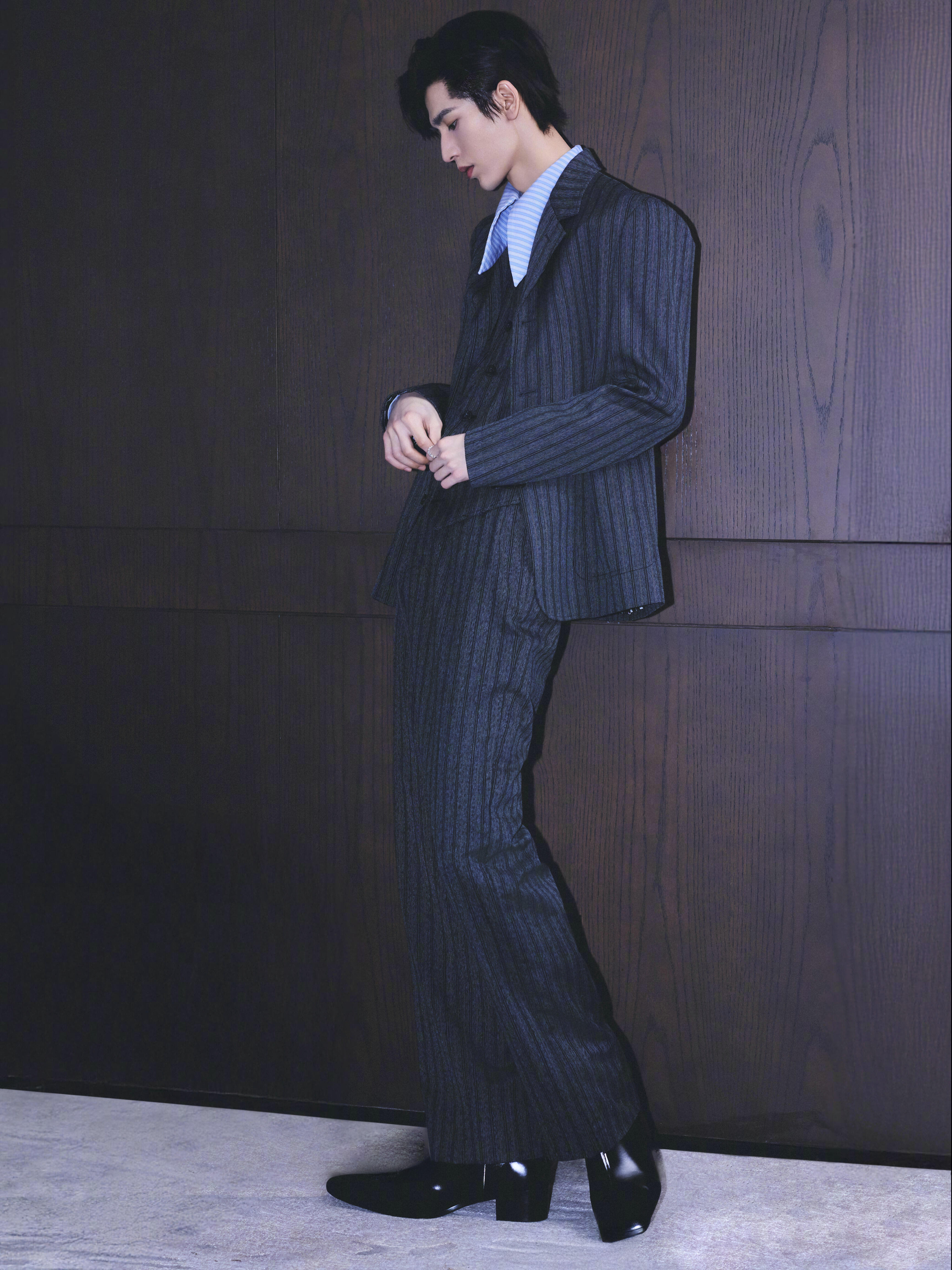 张凌赫权威的绅士型男张凌赫星光大赏两套造型,一套苔藓绿西装,一套渐变渲染长外套内搭灰色条纹西装,完全舒适区的绅士贵公子穿搭,实在太权威了