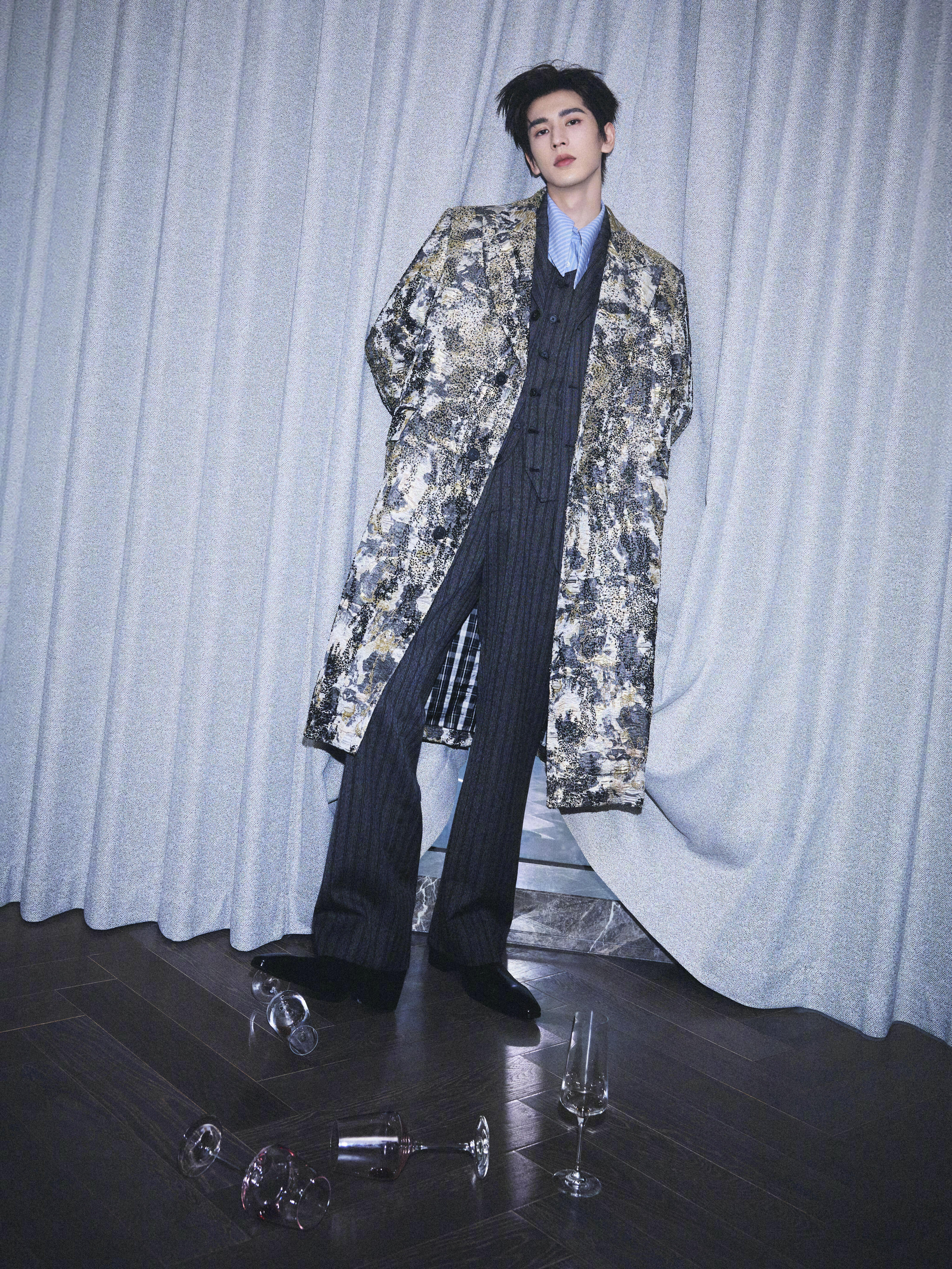 张凌赫权威的绅士型男张凌赫星光大赏两套造型,一套苔藓绿西装,一套渐变渲染长外套内