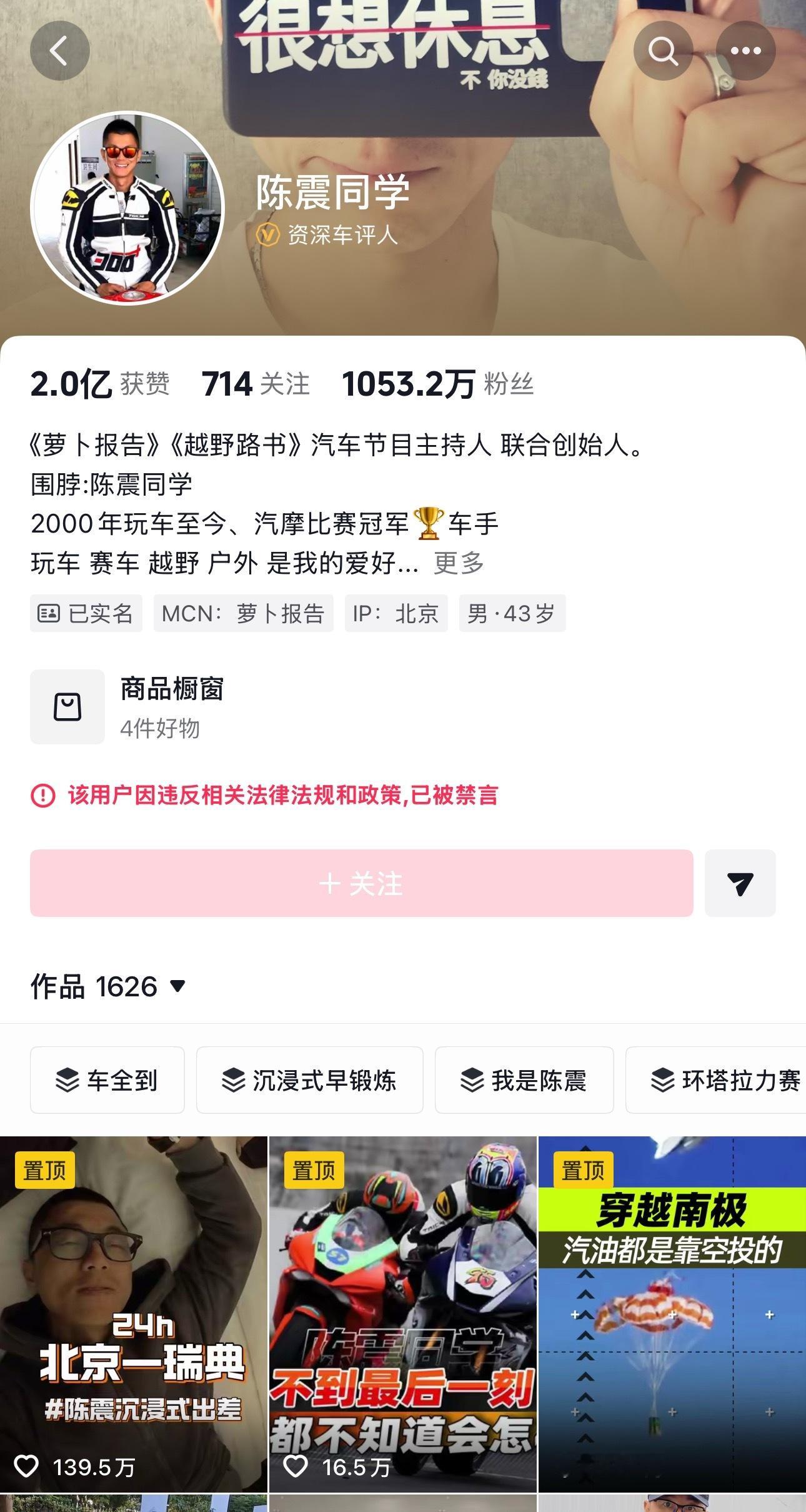 陈震部分账号已解封个别平台确实解了,陈震这种漏税被央媒当做典型,居然封禁这么点时间么?很多KOC乱讲话都封禁3-6个月起步呢,这是什么道理呢?