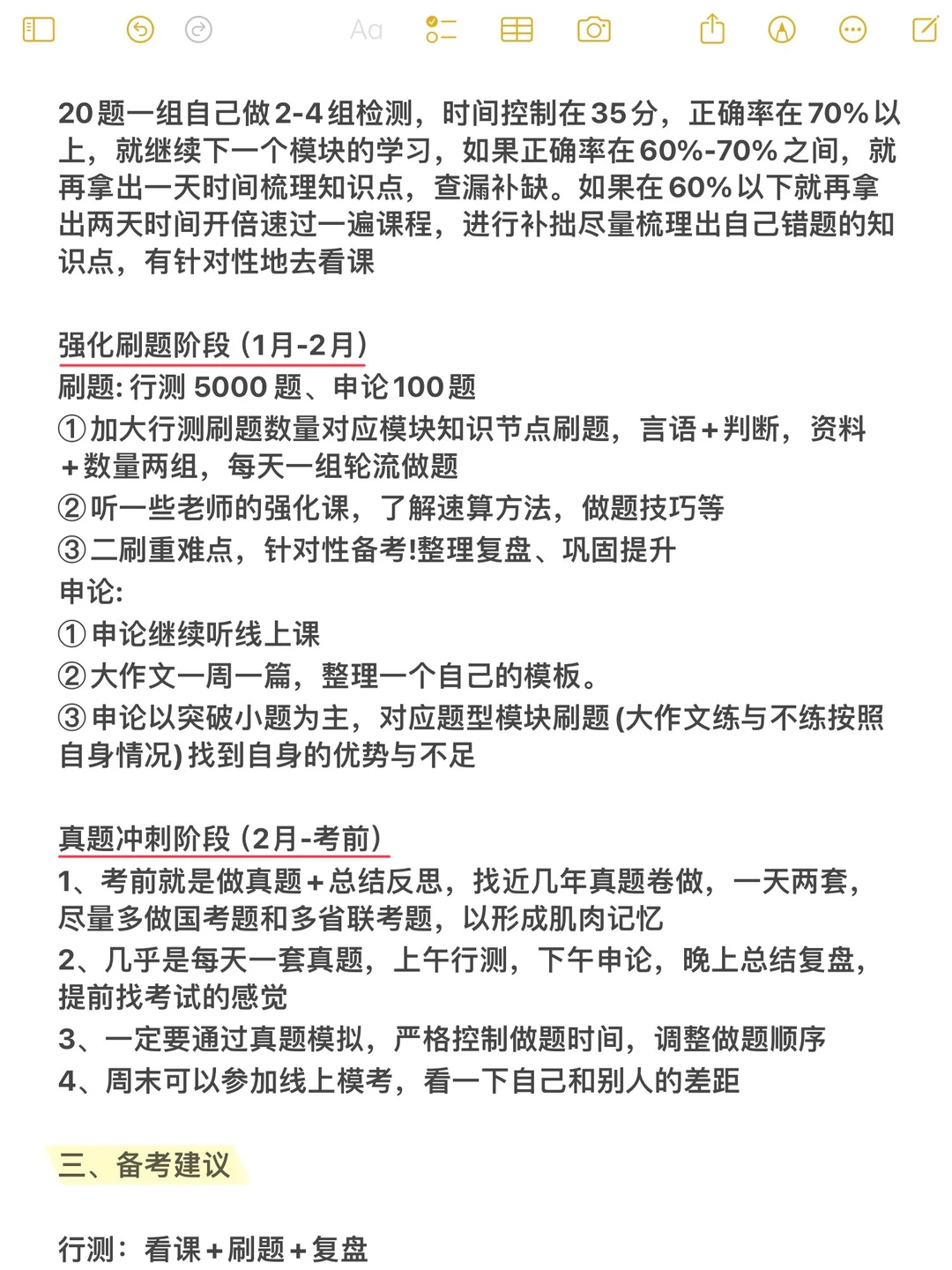 ✔️行测重点:判断、言语和资料三大板块分值最高,是重点复习模块,申论学各个题型的做题方法本阶段辅助刷题,看完一章课就刷对应的题,巩固知识点。