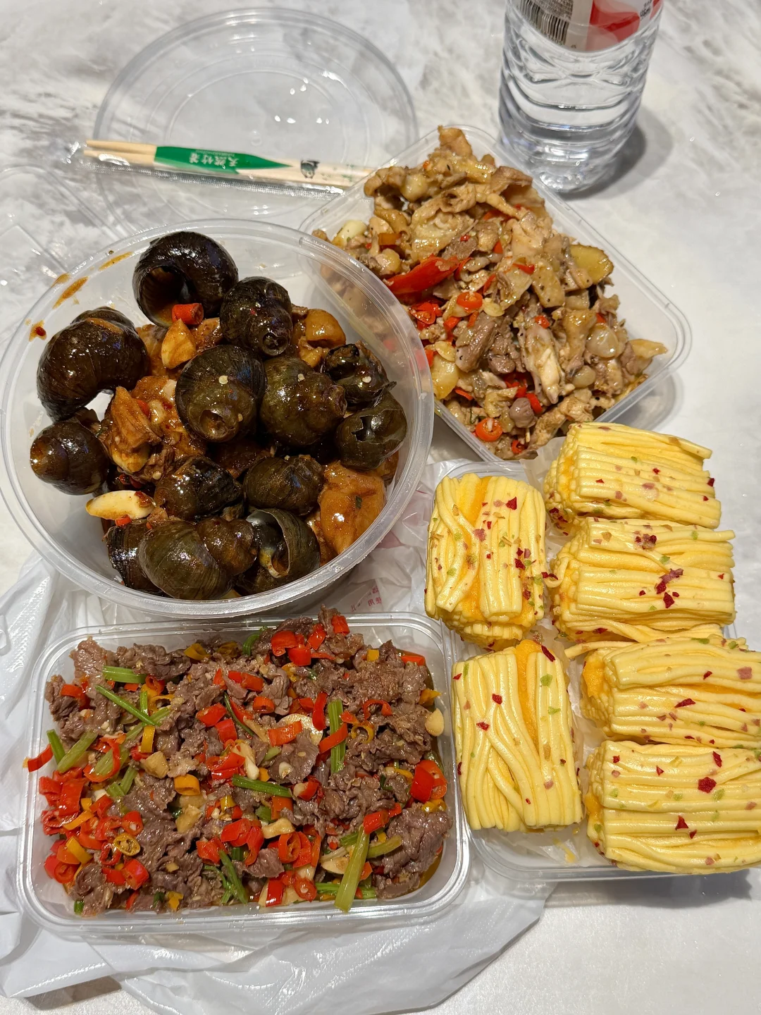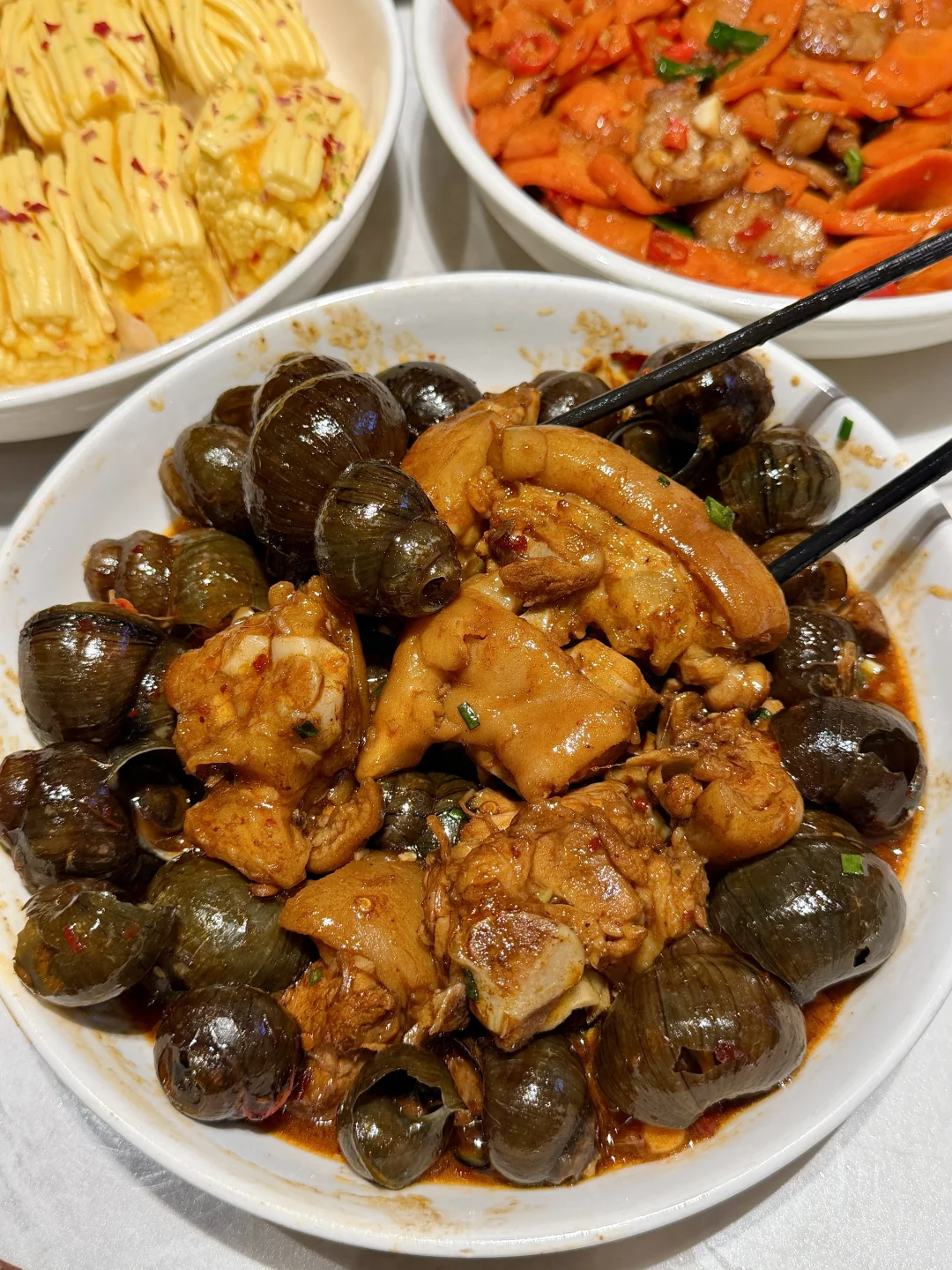 真的名不虚传好吃!生意巨🔥饭点都坐满了本地人!不夸张,这家在我心中在衡阳可以排top的级别!他家叫:黄家味山野小炒,藏在巷子里面。招牌田螺猪脚、生炒吊龙、茶油土鸡……好好吃🤤好下饭~跟我一样爱吃辣的姐妹一定要试试!!还有蛋黄卷软糯香甜,我和室友吃完还打包带走了一份