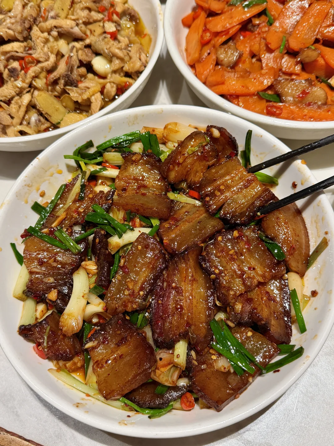 终于吃上姥姥家春饼!都是各种家常菜,但是把各种菜卷在薄薄的筋饼里,一口咬下去,层