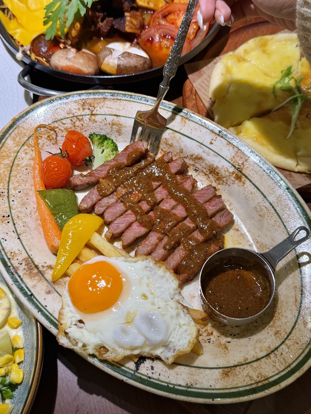 近期惊艳!!感谢🥹长沙大学生带路,才能找到这么便宜好吃的小店(叫春和景明)藏在老居民楼下,和npy吃过不10次! 店里摆满了鲜花,氛围真的爱了!不管是约会还是生日都好适合~还有他家牛排锅我真的爱死~满满都是料!还有肉串一口下去好扎实,吃得出用料好好!人均六七十都是现点现做的!牛排和意面也好好吃,用料真的吊打长沙很多网红店了,真的会成为我再来无数次的理由