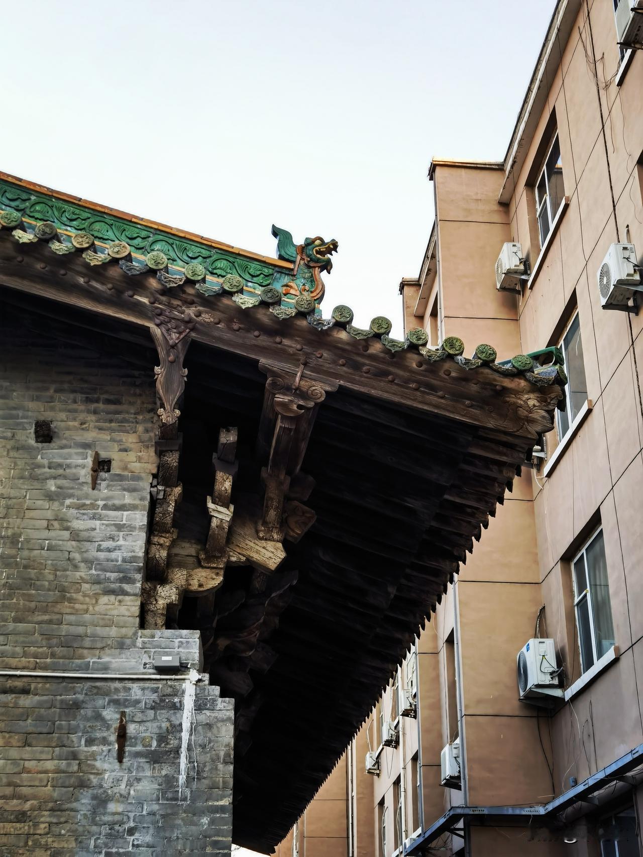 政府大院里的国保 三圣寺大殿位于盂县县委大院内,在门卫处登记后,就可以入内参观。 三圣寺现仅存大殿一座,巨大悬山顶建筑,面阔五间,进深八椽。 始建年代不详,有宋宣和六年(1124年)大铁钟留存,可知寺院历史久远。 金泰和七年,曾经历重建,明洪武时期又进行了重修。 一度用作政府礼堂,现辟为展室。