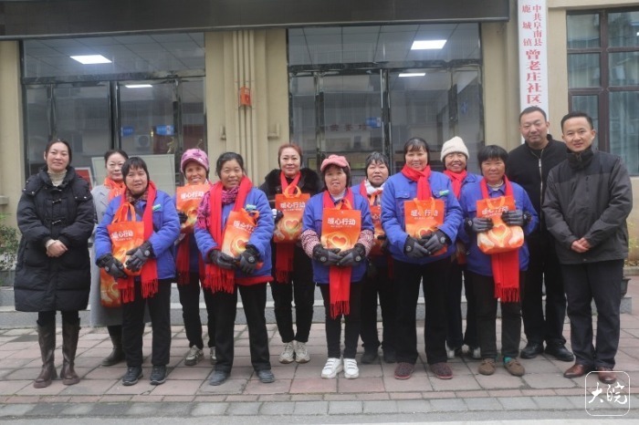 12月20日,张凯先来到在曾老社区居委会,给这10名环卫女工们发放了围脖、保温杯、棉手套、护手霜、唇膏、消毒湿巾、耳捂子共七件御寒物资。之后大家一起来到小饭店共同品味猪肉水饺。