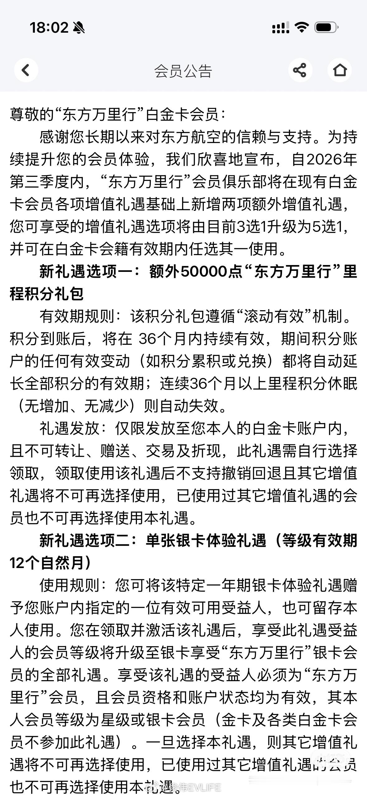 东航白金卡礼遇从三选一变成五选一之前三选一显然是选酒店三晚更佳,现在新增5万积分那个看着还不错,能换2-3张往返机票,看来东航也爱听大家的声音~