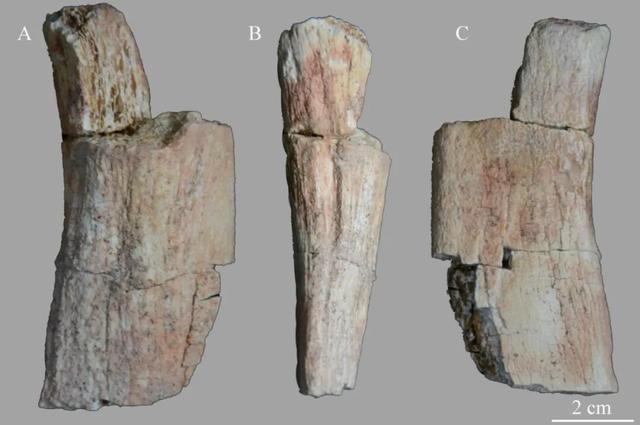 此外,一同发现的骨骼化石为一小段肋骨,略弯曲且扁平,推测属于兽脚类恐龙的中段或近端肋骨。