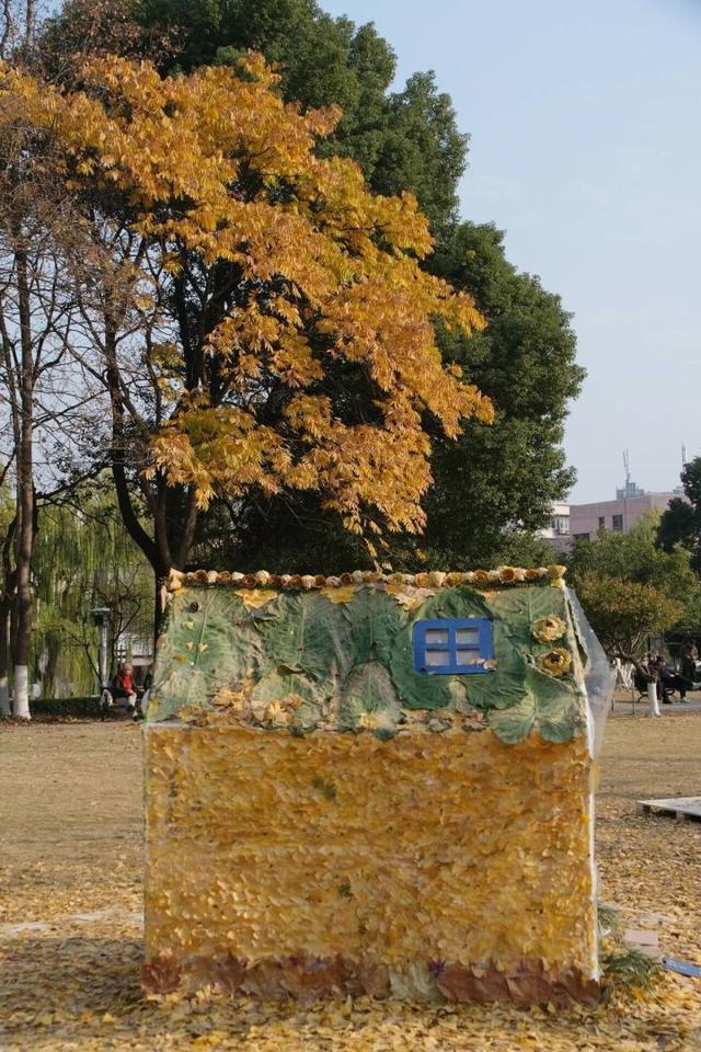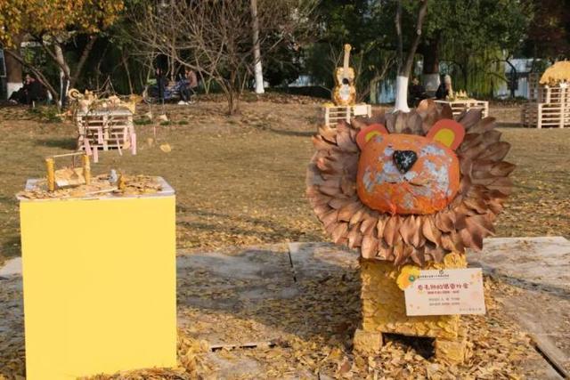 “创作所用的银杏叶,全部由环卫中心统一收集自萧山范围内。主题则是‘金叶奇想’,我们鼓励学生自由创作,没有设定具体框架,这些作品都完全源自他们自己的想象。”邱浩杰说。