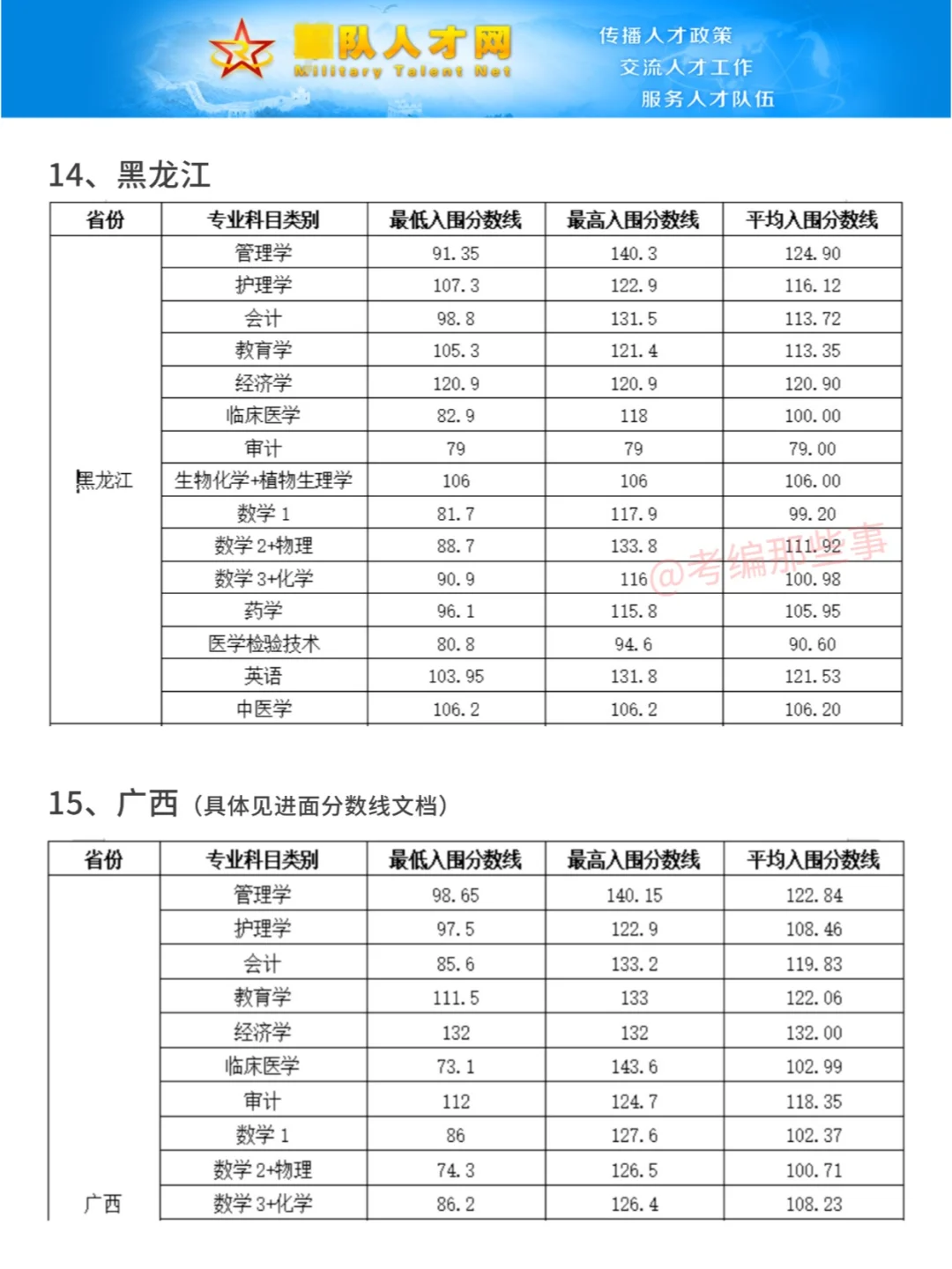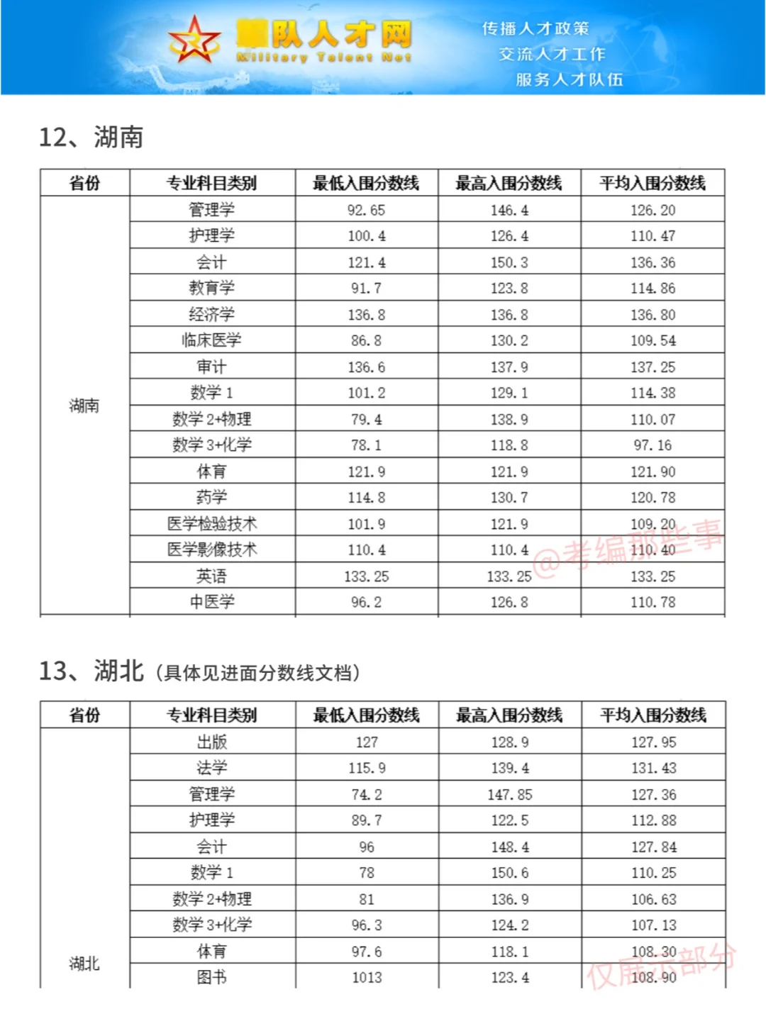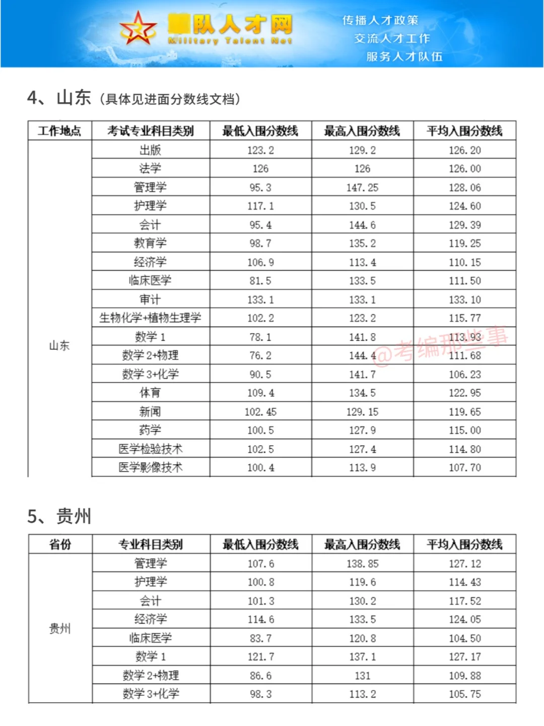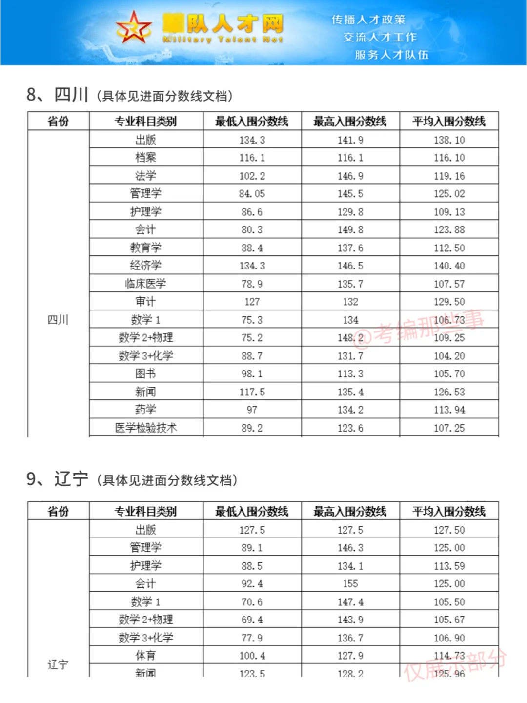 各省分数线~ 入围分数为公共科目、专业科目之和 公共科目相当于公基+职测 专业科目(分类别):出版、法学、管理学、护理学、会计、教育学、经济学、临床医 学、审计、生物化学+植物生理学、数学 1、数学 2+物理、数学 3+化学、体育、新闻、医学检验技术、医学影像技术、艺术基础综合、英语等 文职 文职备考 文职考试 25文职 2025文职 文职进面分数线 文职面试 文职笔试 进面分