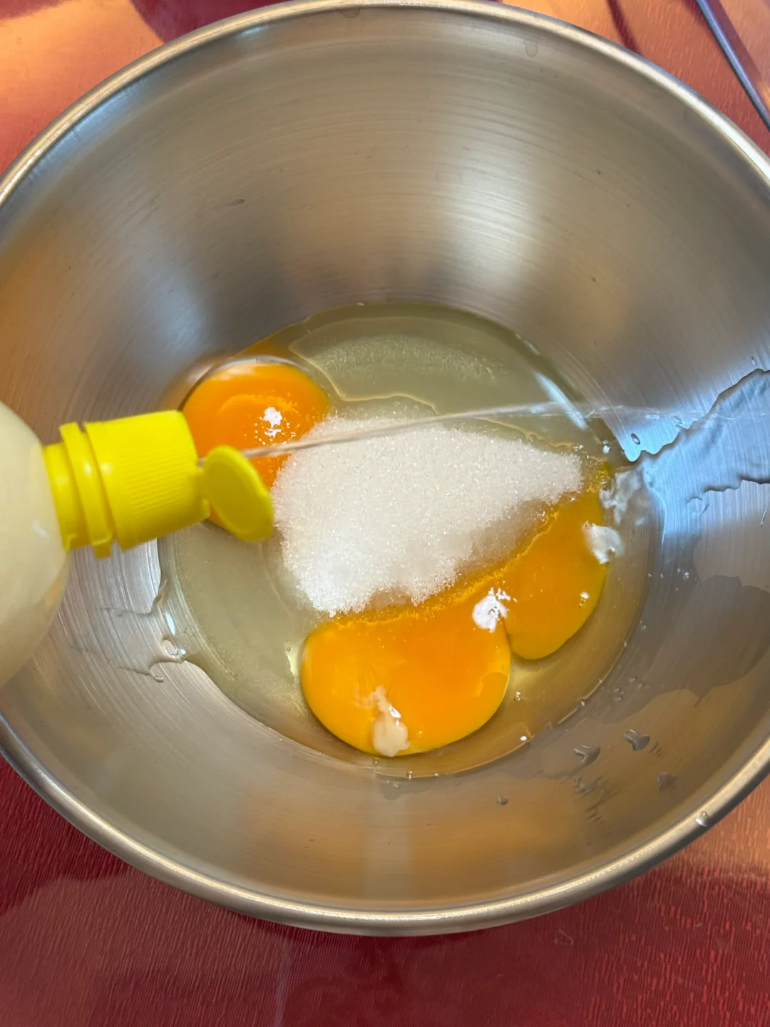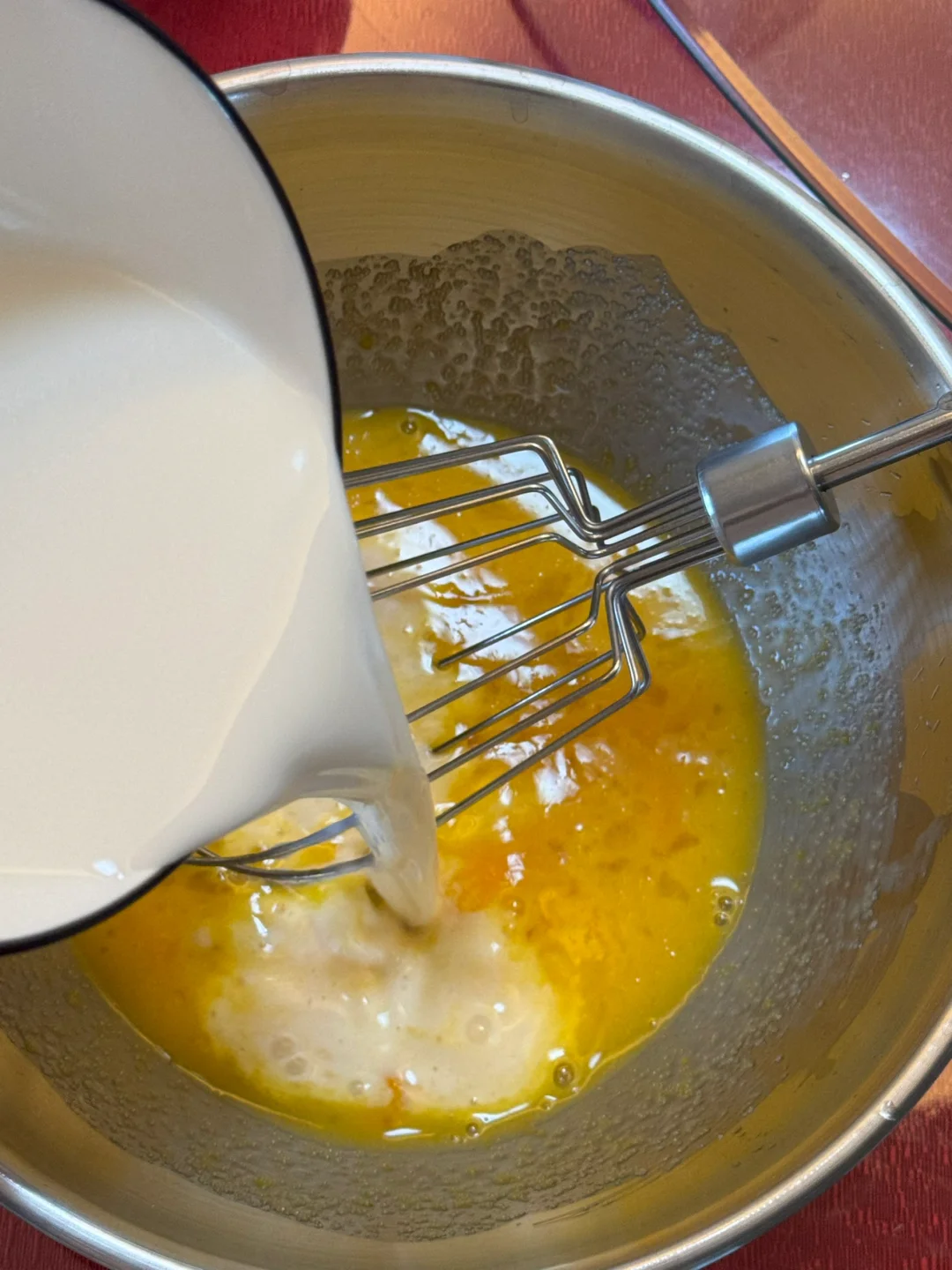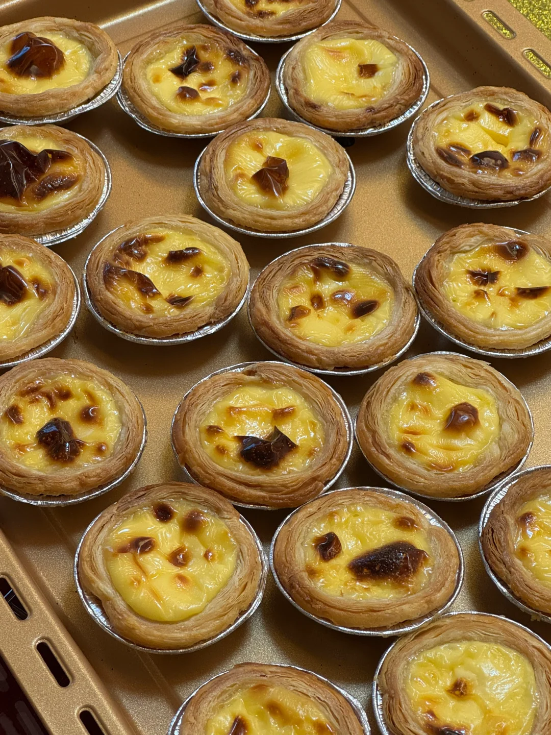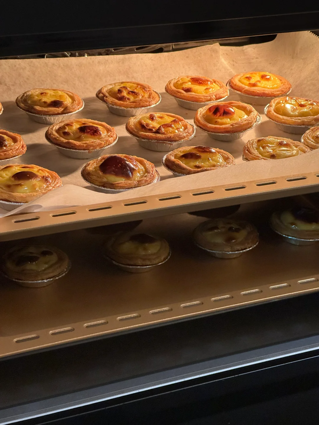 🌷此配方可做22个小蛋挞 🌷食材:纯牛奶100g,全蛋1个,蛋黄1个,淡奶油150g,细砂糖30g。 🌷做法:将以上食材搅拌至细砂糖融化。 过筛两次(必须过筛,内部嫩滑的关键) 在预热烤箱的时候,倒入蛋挞液(蛋挞皮不用解冻) 烤箱提前预热,200度烘烤25分钟(注意观察上色) 出炉后震一下热气,先不着急吃,晾凉后再吃(蛋挞皮用的俏侬的,凉了也很酥脆)