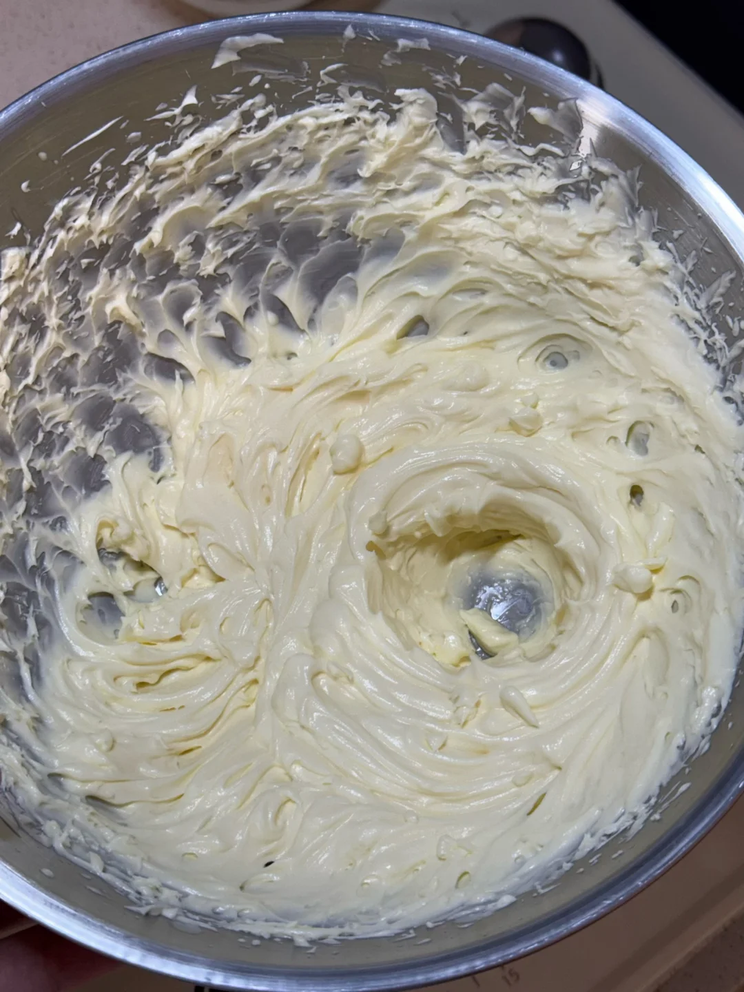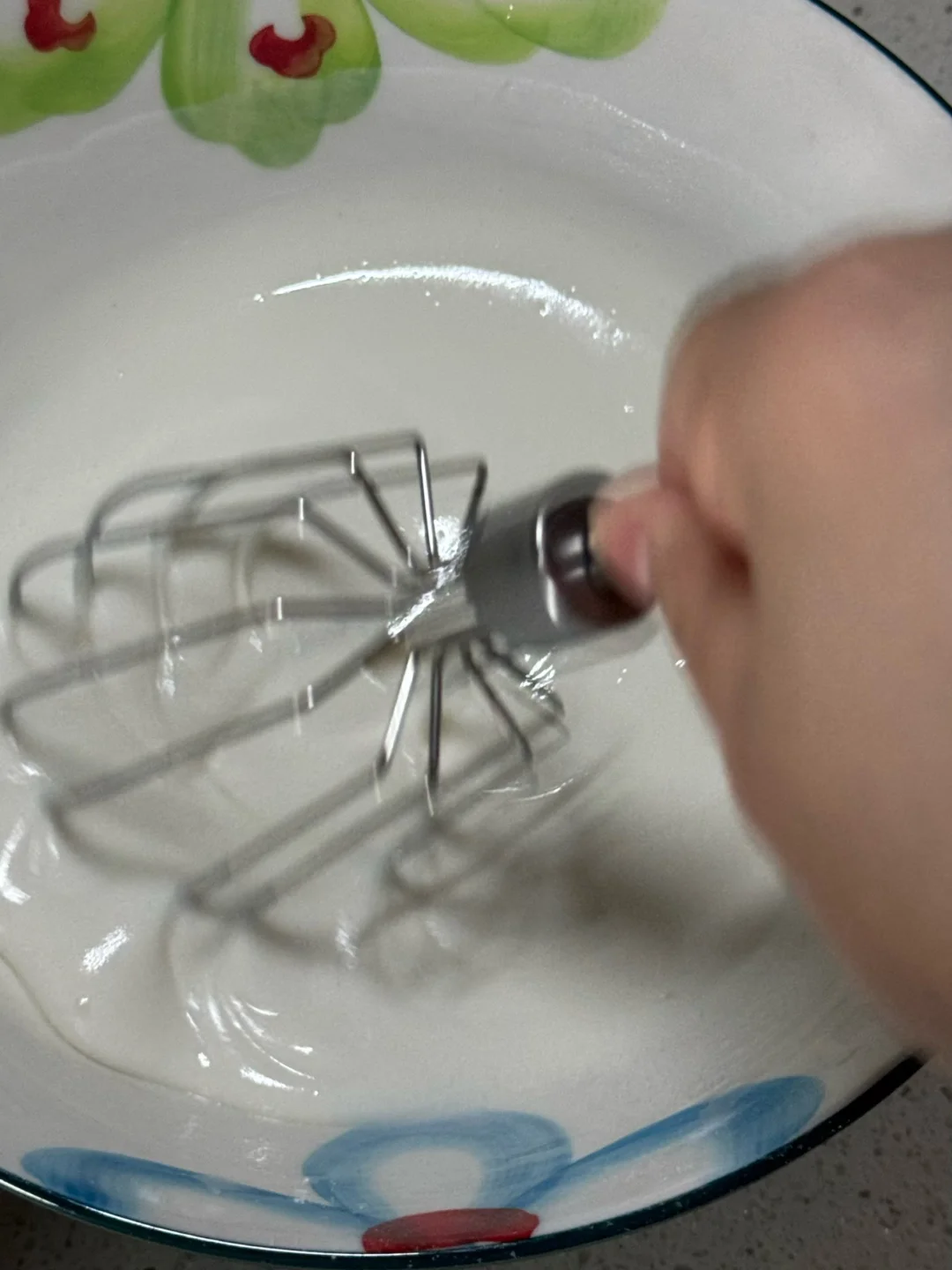 5.奶油奶酪100g,淡奶油150g,细砂糖15g打发至硬挺装裱花袋备用。